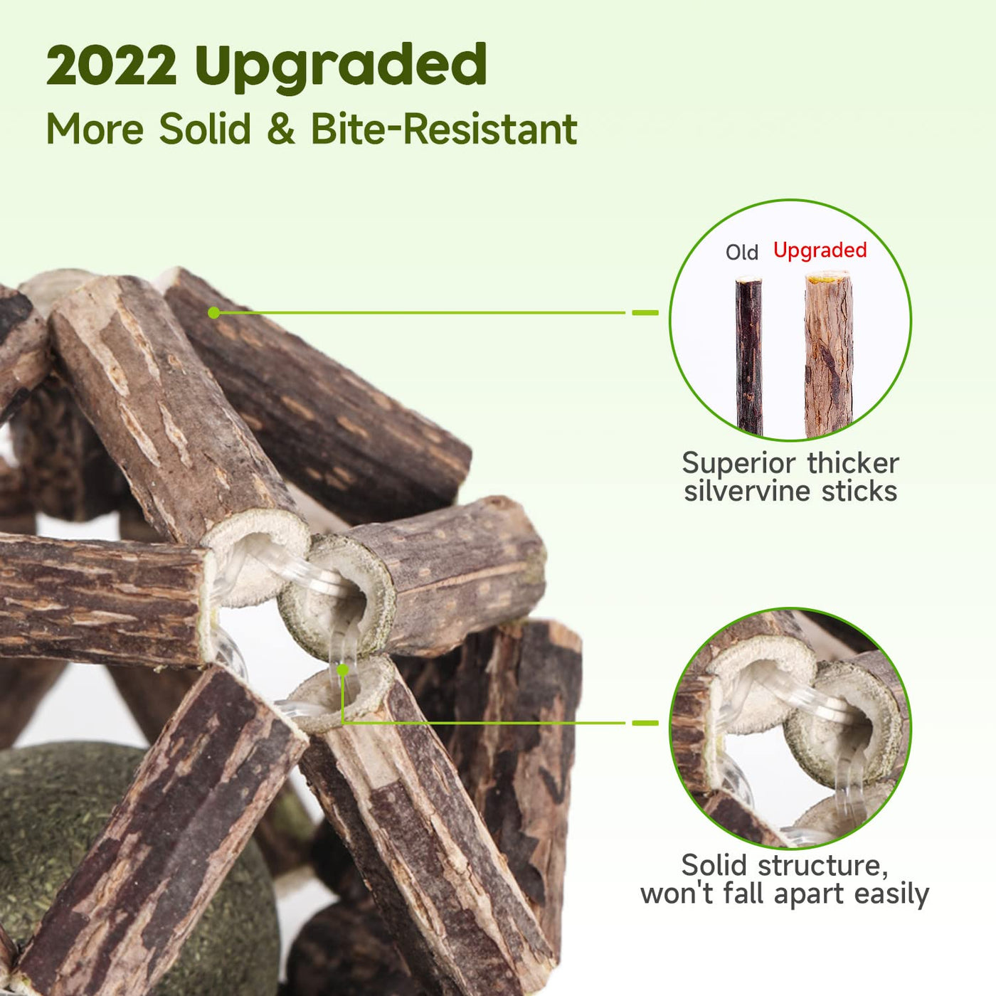 Potaroma Catnip Toys, 3Pcs Cat Toys Natural Silvervine Stick Cage Balls & Bell Ball For Indoor Cats, Kitten Cleaning Teeth Molar Matatabi Cat Chew Toy All Breeds