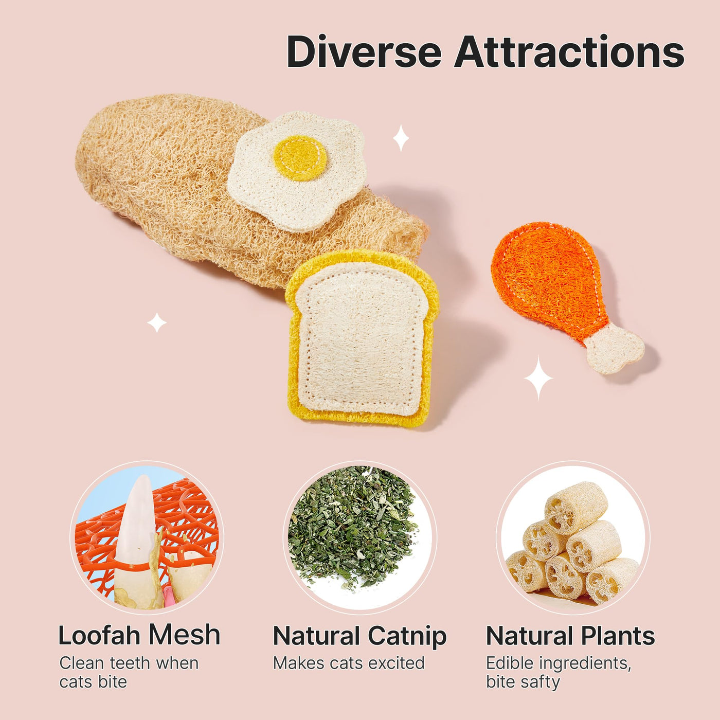 Potaroma Loofah Cat Chew Toys With Catnip And Silvervine, 3Pcs Interactive Kitten Loofa Dental Teething And Biting Catnip Toys F