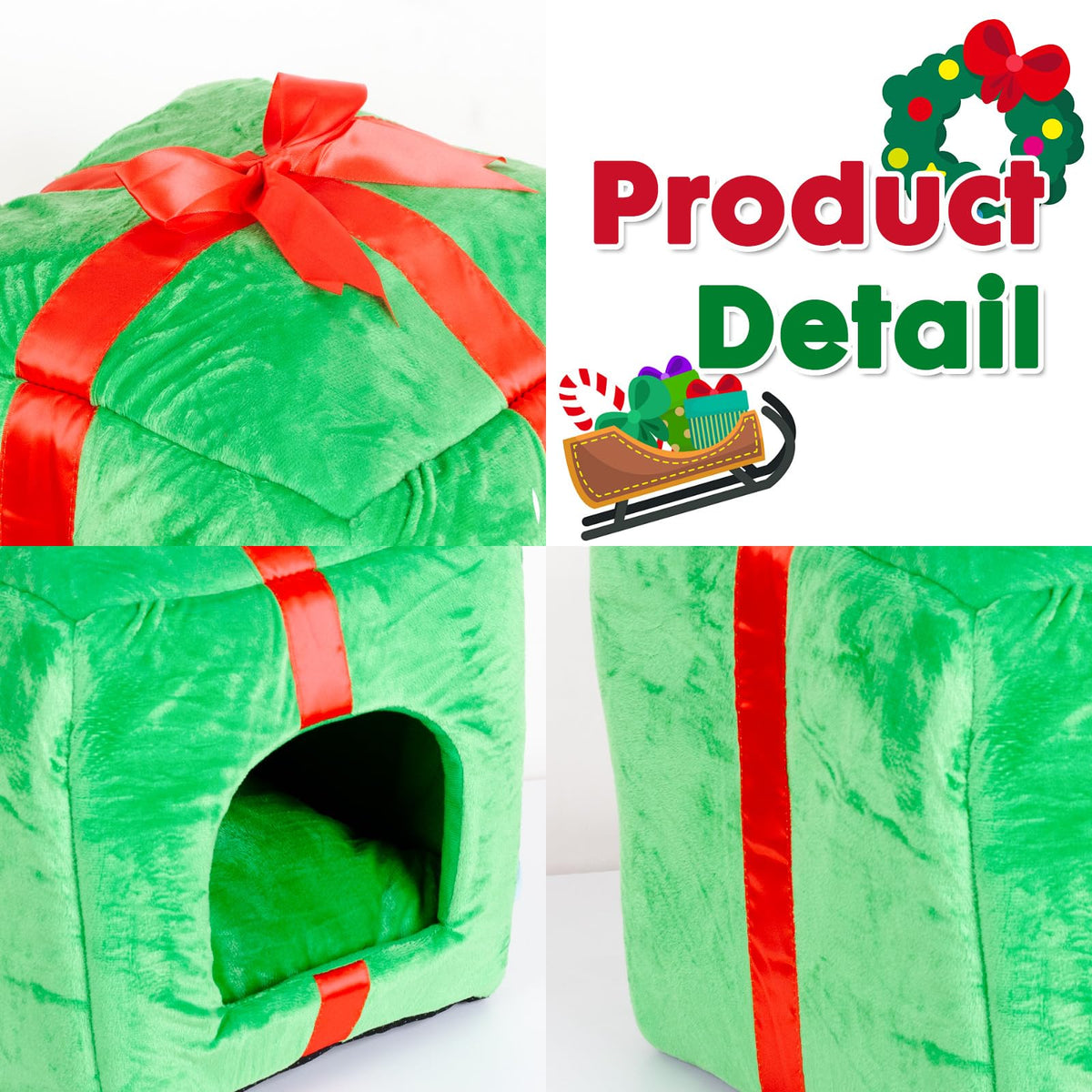 Powerking Christmas Cat House Square Cat Bed Cat Cave Removable Washable Cat Condos With Non-Slip Bottom And Cushion, Great Gift