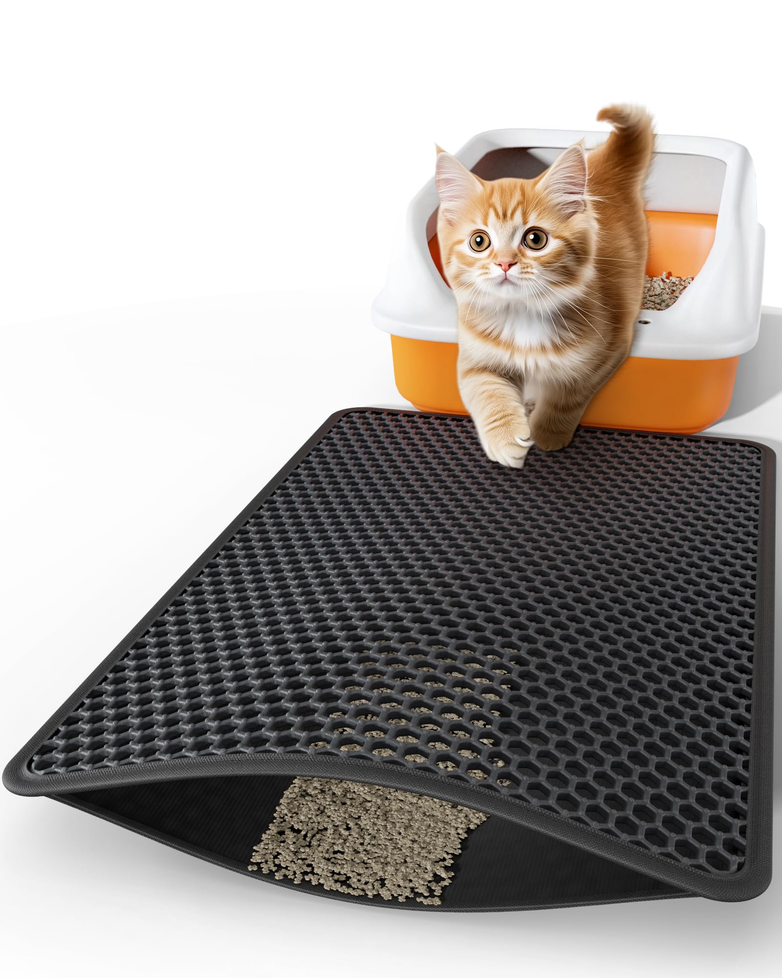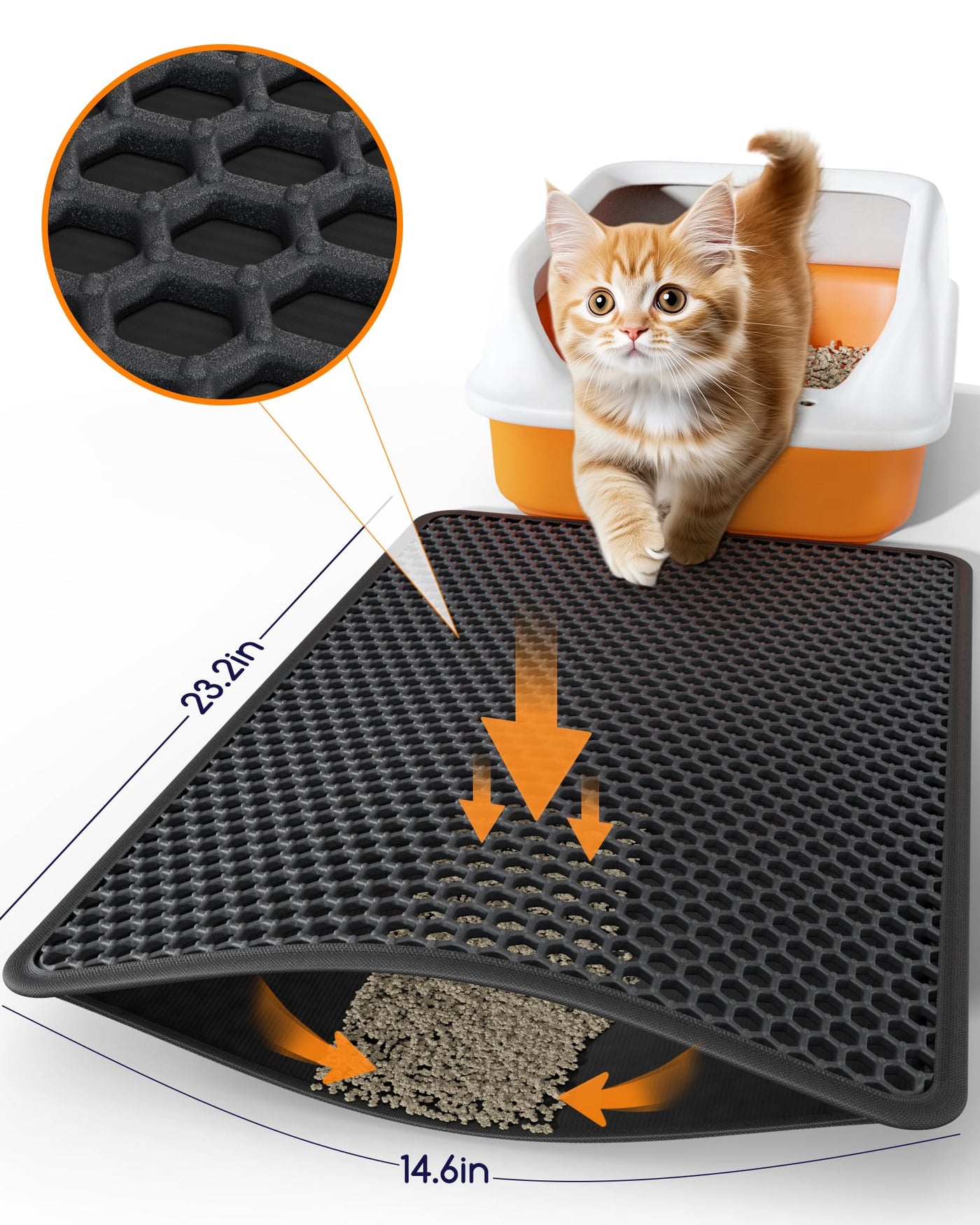 Powools Cat Litter Mat - 23.2'' X 14.6'' Small Litter Box Mat With Double Layers, Urine-Proof And Non-Slip Litter Trapping Mat,