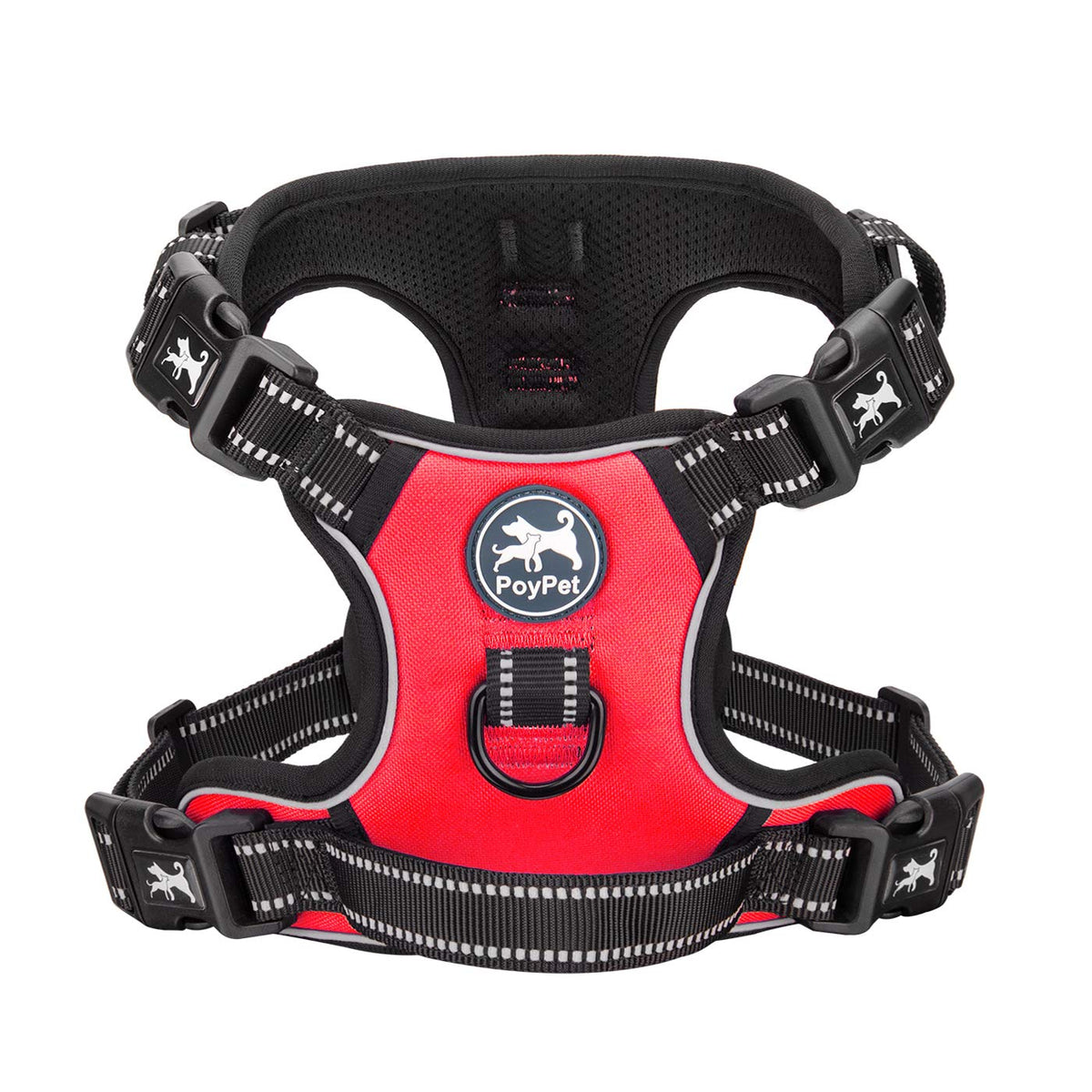 Poypet 2019 Upgraded No Pull Dog Harness With 4 Snap Buckles, Reflective With Front & Back 2 Leash Hooks And An Easy Control Han