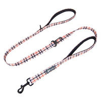 Poypet 5 Feet Dog Leash - 2 Cushioned Handles - Functional Car Seat Belt (Checkered Beige)