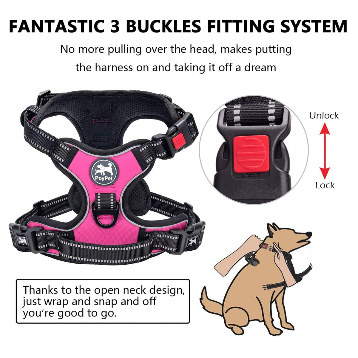 Q: Is the PoyPet No Pull Dog Harness suitable for all dog breeds?A: Yes, the PoyPet No Pull Dog Harness is designed for small to large dogs, making it suitable for various breeds. Its adjustable straps provide a customized fit, ensuring comfort and safety for different body types.