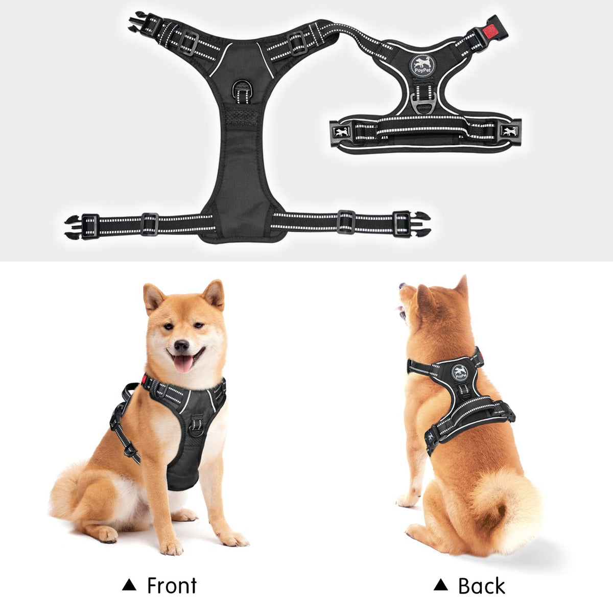 Poypet No Pull Dog Harness, No Choke Reflective Dog Vest, Adjustable Pet Harnesses With 2 Leash Attachments With Easy Control Padded Handle For Small Medium Large Dogs(Military Green,Xl)