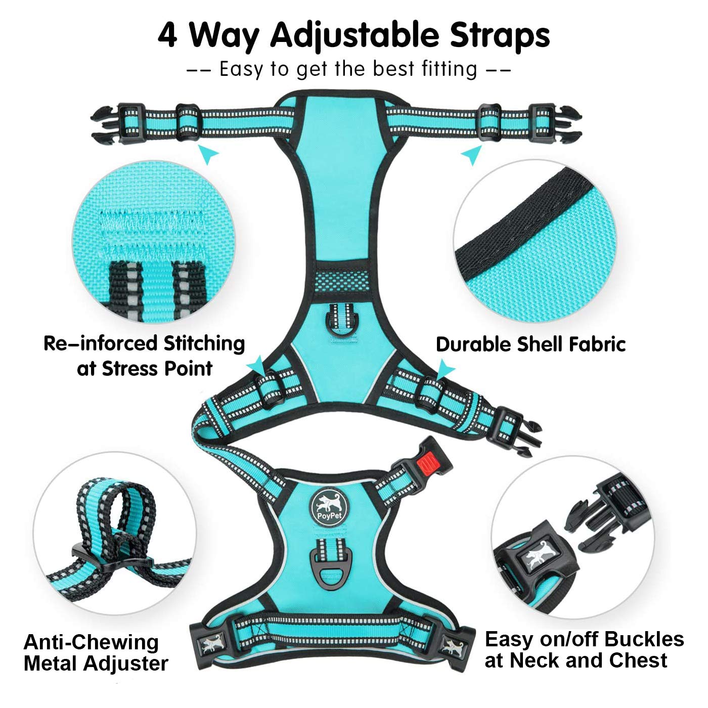 Poypet Comfortable No Pull Safety Dog Harness - Simple To Adjust, Highly Reflective And Nicely Padded. --> Easy Walk. --> Easy To Clean. --> All Weather Use. --> Innovative No-Choke Design. --> 2 Durable Metal D-Rings On Top And Bottom. --> Light Weight But Tough Enough. --> Padded Handle For Extra Control To Guide Your Dog. --> Reinforce Stitching At Stress Points For Added Durability. --> Reflective Straps Allows Safe At Night Or Early Morning Walk. --> Quick Dry And Breathable Mesh Fabric Lining, Skin-Friendly, Soft, Comfortable And Well Made. Size: X-Small -- Neck: 10-12.5 ; Chest: 10-22 ; Small --- Neck: 12-18 ; Chest: 14-24 ; Medium -- Neck: 14-20 ; Chest: 16-28 ; Large --- Neck: 16-24 ; Chest: 22-33 ; Extra Large - Neck: 22-33 ; Chest: 22-44 ; Order The Harness For Your Furry Friends Today, And Have An Enjoyable, Worry-Free Walk!