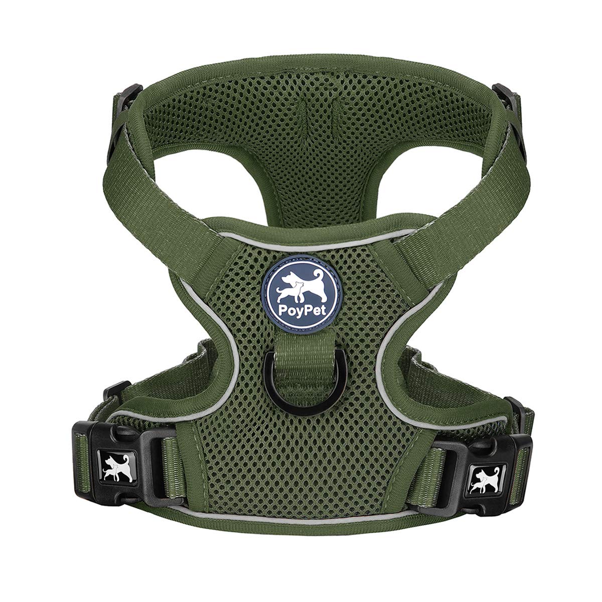 Poypet Reflective Soft Breathable Mesh Dog Harness Choke-Free Double Padded Vest With Adjustable Neck And Chest(Military Green,X