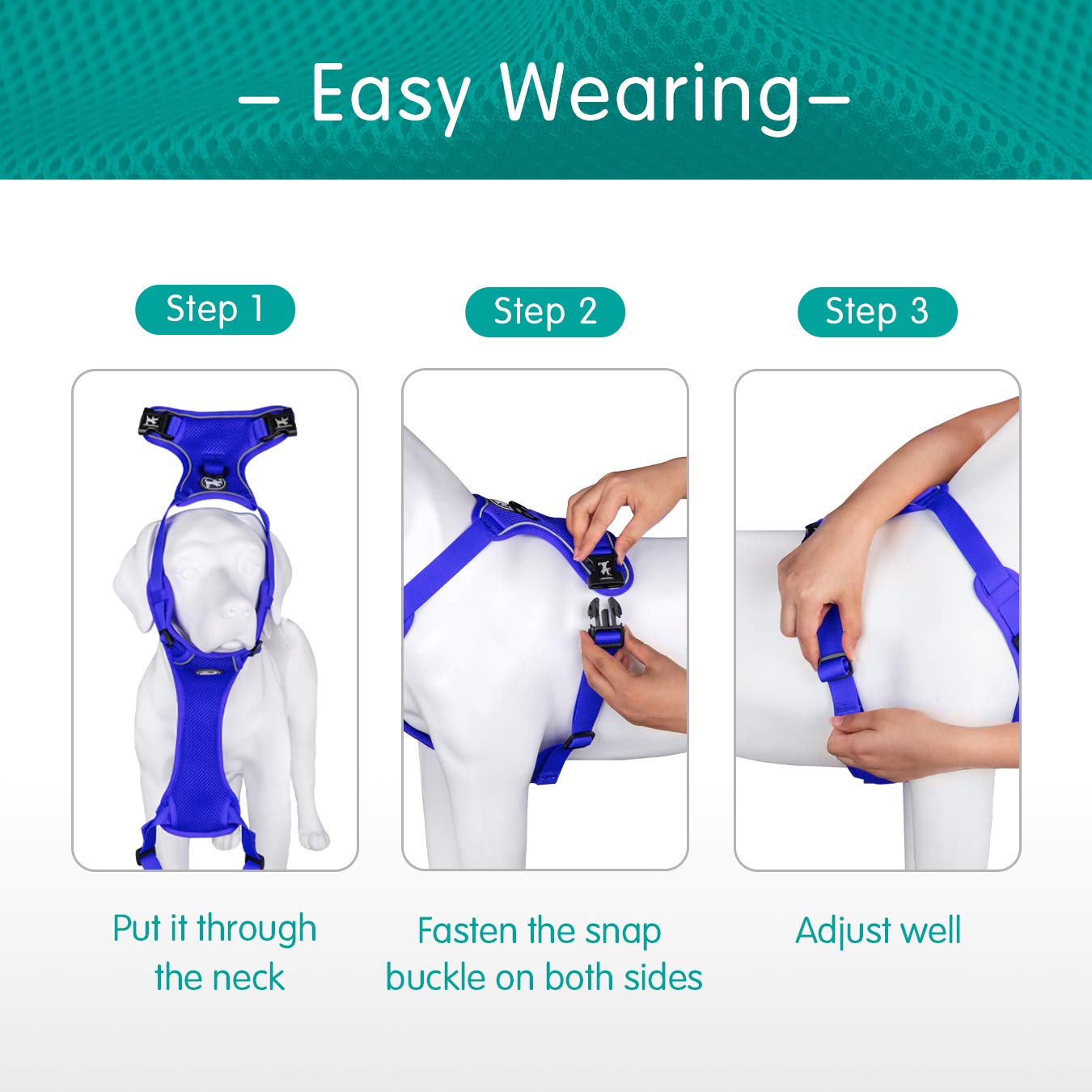 Poypet Reflective Soft Breathable Mesh Dog Harness Choke-Free Double Padded Vest With Adjustable Neck And Chest(Royal Blue,Xl)