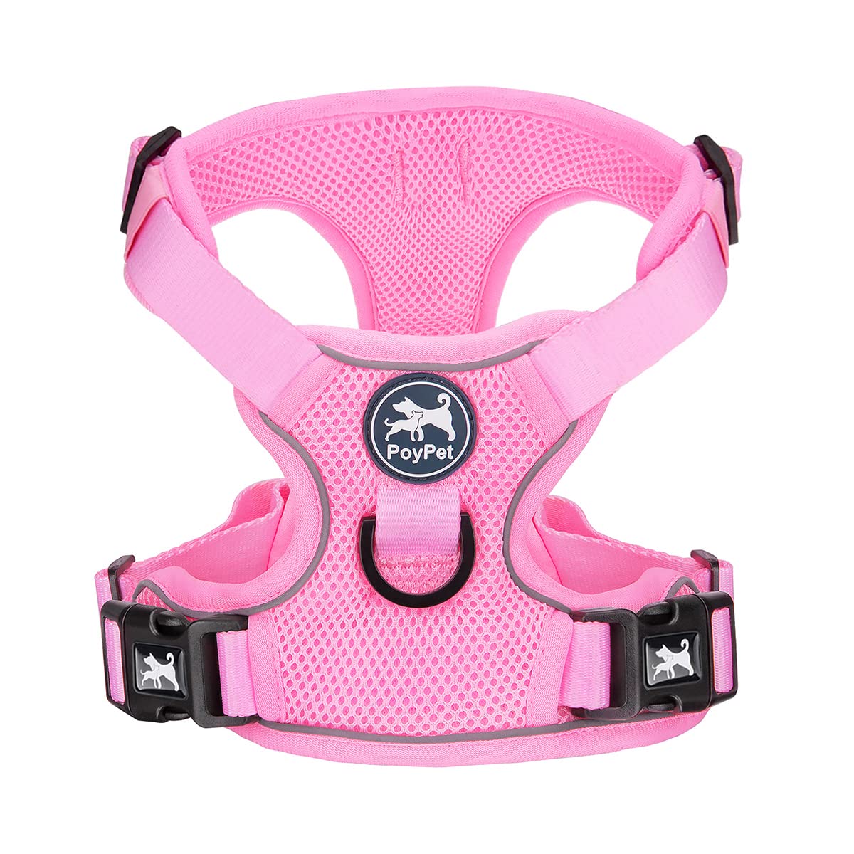 Poypet Reflective Soft Breathable Mesh Dog Harness No Choke Double Padded Vest Adjustable(Light Pink,Xl)