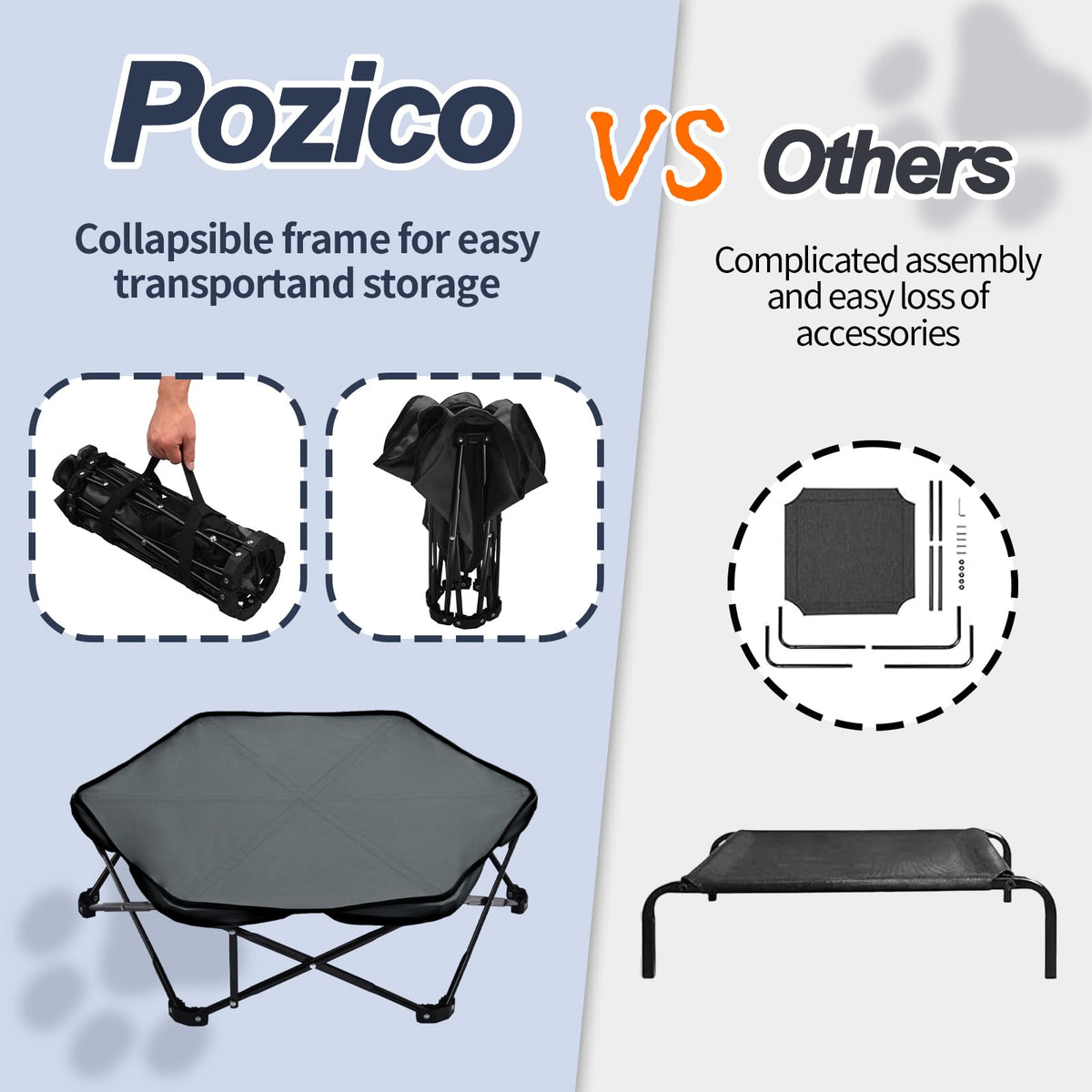 Pozico Small Elevated Dog Bed - 26'' Foldable Pet Cot With Carry Handle, Raised Dog Bed With Sturdy Frame & Plush Cushion, Porta