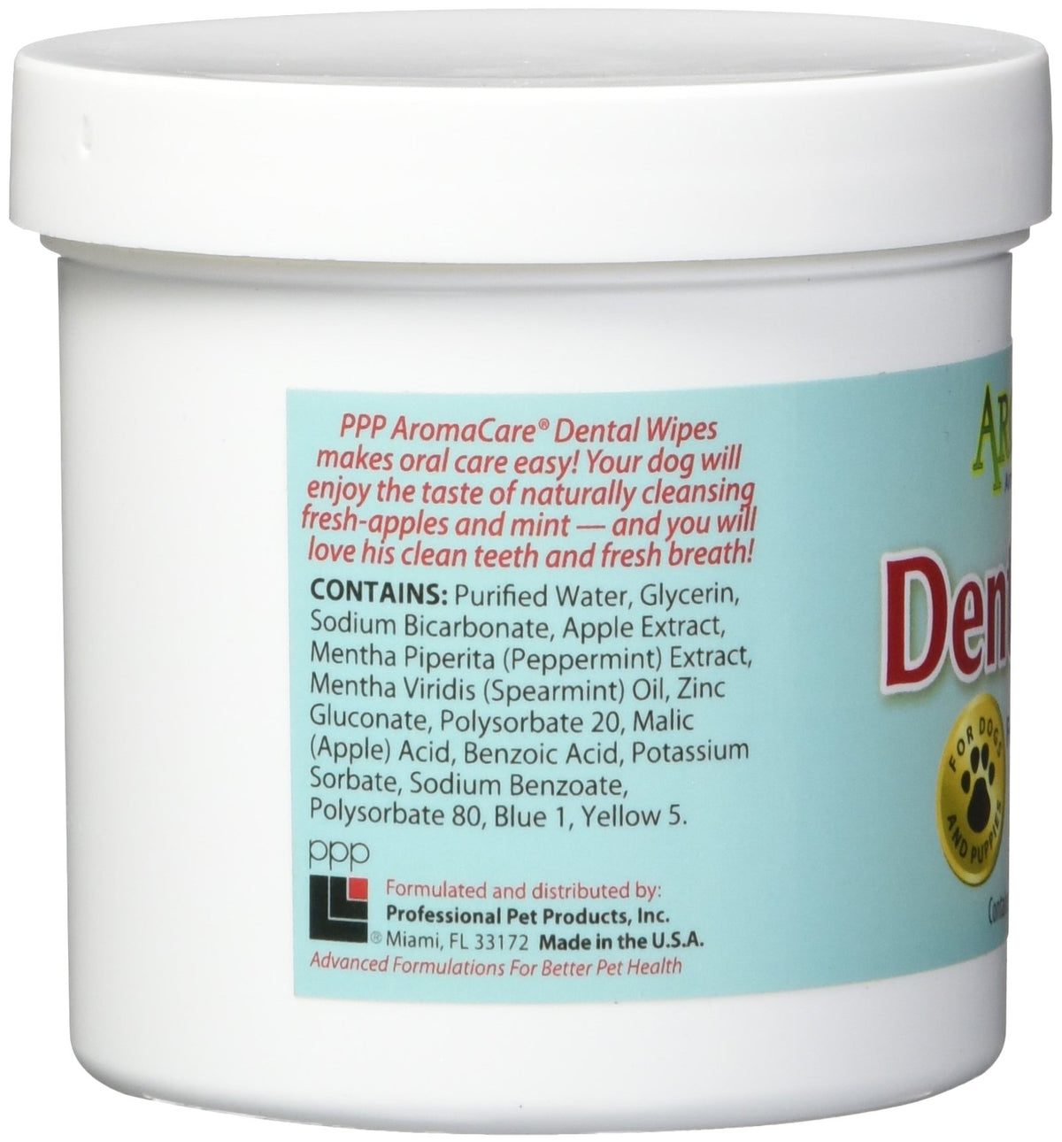 Q: What are PPP Pet Aroma Care Dental Wipes made of?A: PPP Pet Aroma Care Dental Wipes contain natural ingredients such as Apple Essence, Baking Soda, and Fresh Mint, which help to clean your pet's teeth and freshen their breath.
