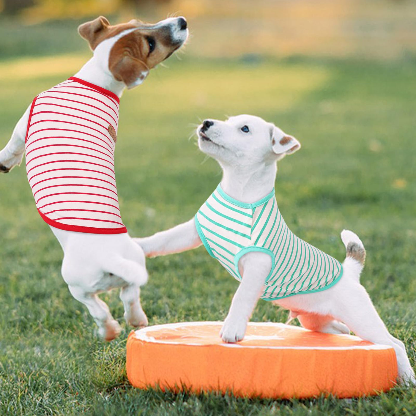 Preferhouse Dog Shirts For Medium Dogs 2 Pack, M Dog Sleeveless Striped Vests Dog Pullover T-Shirts Lightweight Puppy Kitten Tank Top Cat Tee For Teddy Bichon Shihtzu, Redgreen-M