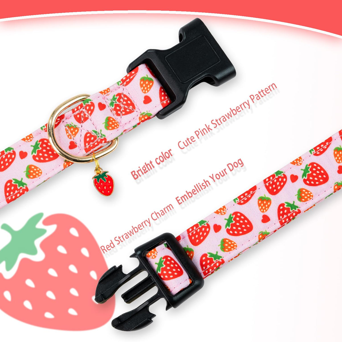 Prehai Cute Cotton Dog Collar For Small Medium Large Dogs Special Design Cute Pink Strawberry Dog Collar For Girl Female Dogs So