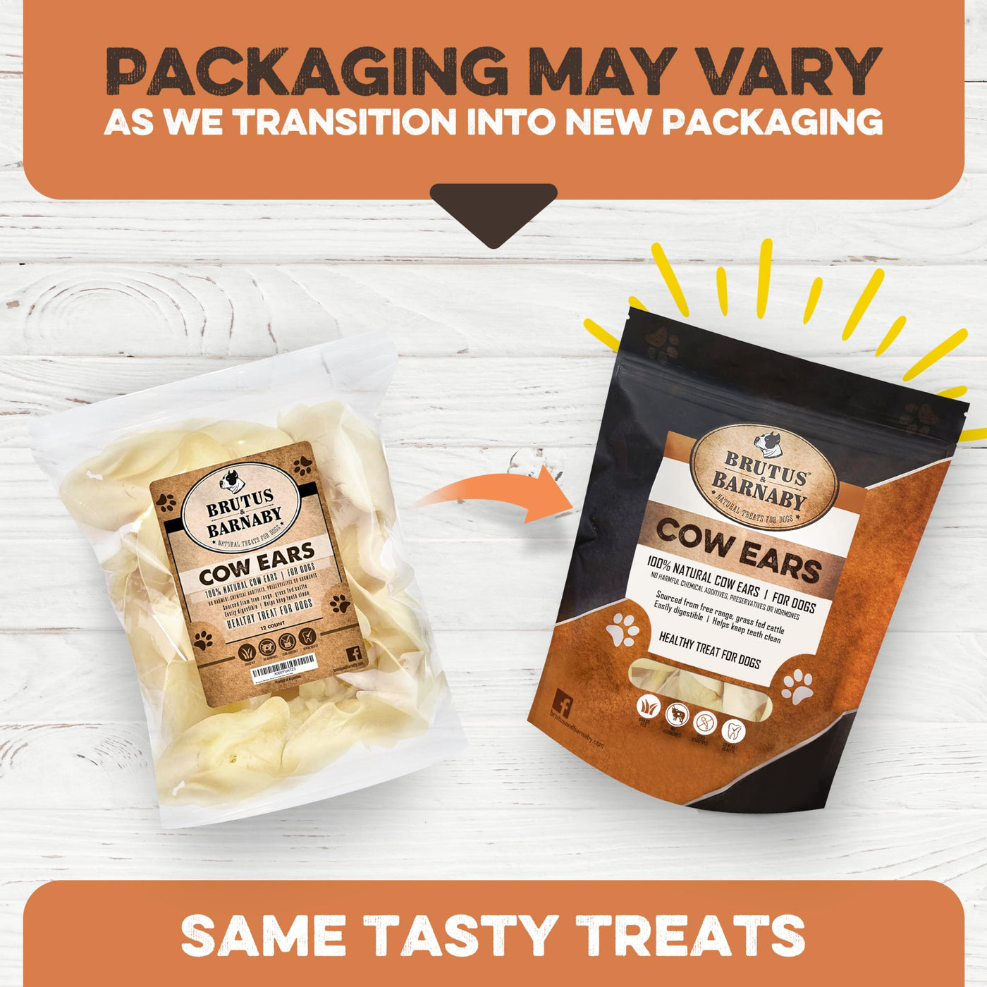 Brutus & Barnabys purpose is to provide healthy, all natural, additive free dog treats, that dogs LOVE and are convenient to give These treats are made up of only one ingredient: Cow ear, and are harvested in South America from free range cows that have not been subject to synthetic hormones or other chemicals - Cow Ear will not crumble or splinter so no crumbs left behind, one of the safest dog chews - Brutus & Barnabys cow ears are received in small quantities so you get the freshest possible dog treats - sealed bag convenient for you so no worrying about messes getting in or smells getting out.