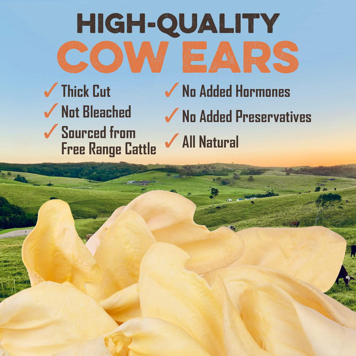 Premium Cow Ears For Dogs, Thick Cut & All-Natural Whole Ears, 100% Grass Fed Beef, No Additives Or Hormones, Safe Rawhide Alter