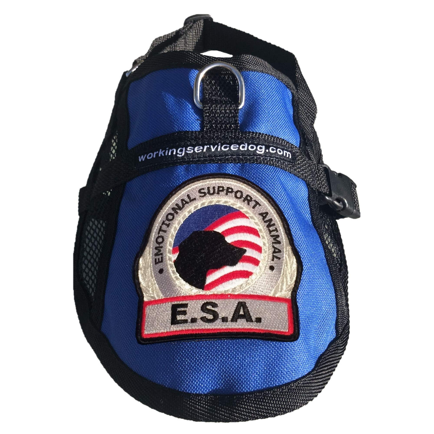 Includes a large metallic patch embroidered with the words 'Emotional Support Animal E.S.A.” this patch is highly visible and can be seen from a distance.