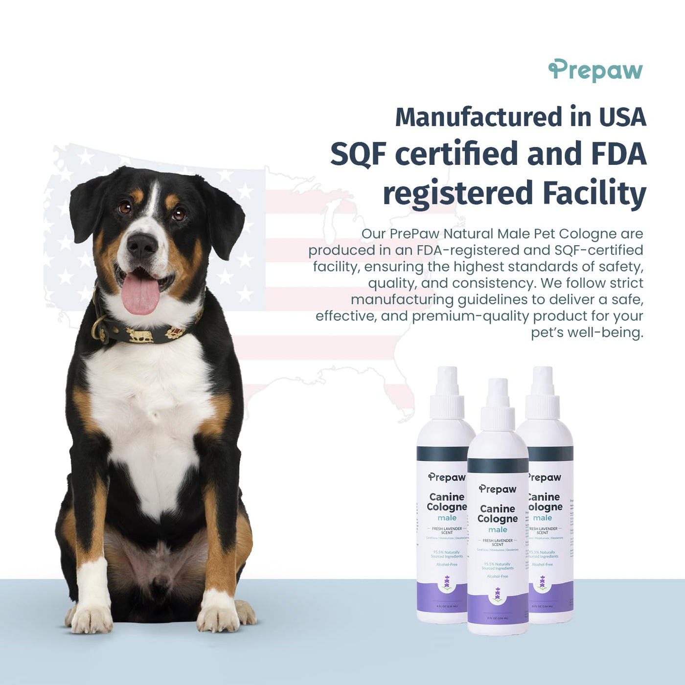 Experience The Ultimate Grooming Solution For Male Pets With Our Prepaw Premium Male Pet Cologne. Specifically Designed To Keep Your Furry Companion Fresh And Stylish, This Cologne Features A Luxurious Masculine Fragrance With A Fresh Aroma And A Hint Of Lavender. Ideal For Use Between Baths Or Grooming Sessions, It Provides A High-End Scent While Nourishing Your Pets Coat With Its Advanced Formula. Made With Over 94% Natural Ingredients, Our Cologne Is Gentle On Your Pets Skin And Coat, Ensuring Safety And Comfort. The Unique 3-In-1 Formula Not Only Delivers A Designer Fragrance But Also Conditions And Moisturizes, Leaving Your Pets Coat Soft, Smooth, And Manageable. Perfect For All Coat Types, This Product Is An Essential Addition To Your Grooming Routine. With An Easy-To-Use Spray Application, This Cologne Makes Grooming Hassle-Free. Whether Youre Freshening Up Your Pet Before An Outing Or Maintaining Their Coat Between Baths, This Cologne Provides A Long-Lasting Fragrance That Enhances Their Charm. Give Your Male Pet The Confidence They Deserve With Our Versatile Grooming Spray. Long-Lasting Designer Fragrance With A Fresh Lavender Touch 3-In-1 Formula To Condition, Moisturize, And Freshen Safe And Effective For All Male Pet Coat Types Crafted From Over 94% Natural, Plant-Based Ingredients Quick And Easy Spray Application For Everyday Use Upgrade Your Pets Grooming Routine With This Luxury Male Pet Cologne. Designed For Owners Who Value Style And Quality, Its The Perfect Way To Keep Your Pet Fresh, Clean, And Confident Every Day.