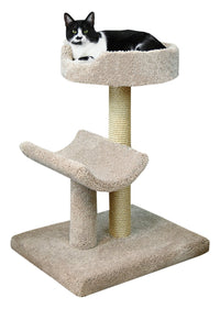 Prestige Cat Trees Kitty Condo Was Built With Your Kitty In Mind. We Handcraft This Purrfect Piece Of Cat Furniture With The Best Materials Such As Solid Wood, Extremely Thick And Plush Household Grade Carpet And Unoiled Sisal Rope. Materials Are Very Important If You Want Your Furniture To Be Strong, Sturdy, Safe And Comfortable For Your Cat And This Is Exactly What We Strive For. The Base Of This Cat Tree Is Very Thick To Prevent Your Cats From Tipping It Over. This Tree Has A 26-Inch Unoiled Sisal Rope Scratching Post And Will Help To Promote Healthy Scratching Behaviors And Healthy Nails. The Hammock Shaped Perch Measuring Almost 18 Wide And 12 Deep And Large Circular Perch Measuring 17 Wide Are Ready For Your Cat To Jump, Play, Nap Or Just Curl Up In And Relax. This Compact Cat Tree Is Proudly Built In The Usa And Will Arrive To You Fully Assembled And Ready For Your Cat To Enjoy.