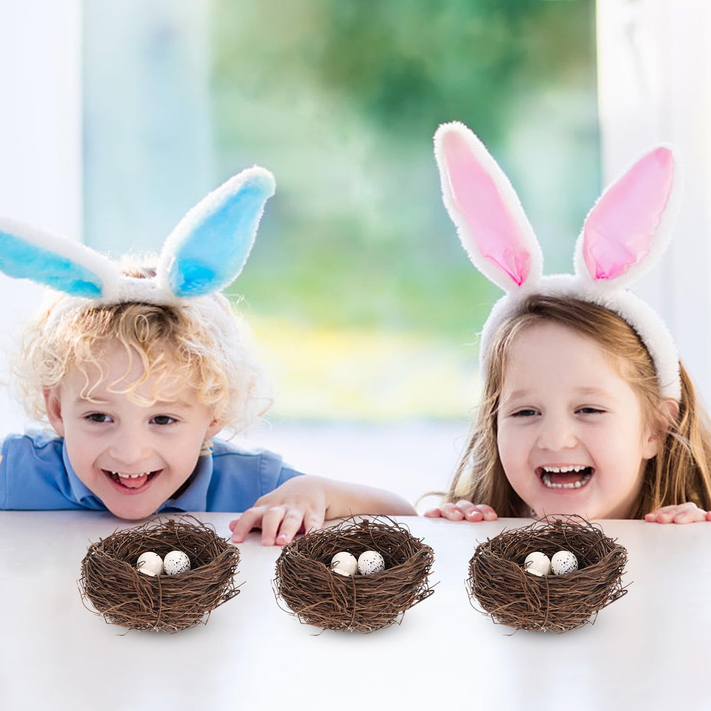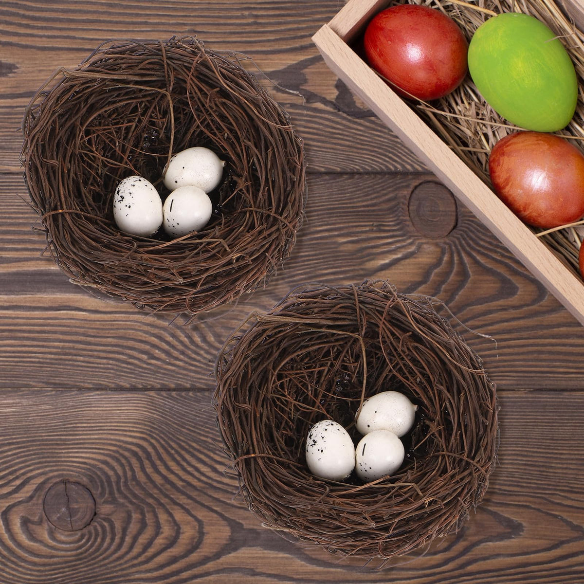 PRETYZOOM 16pcs Artificial Bird Nest Rattan with Fake Bird Eggs Easter Craft Home Decor Hummingbird Nest Party Kids Playset (4Pc
