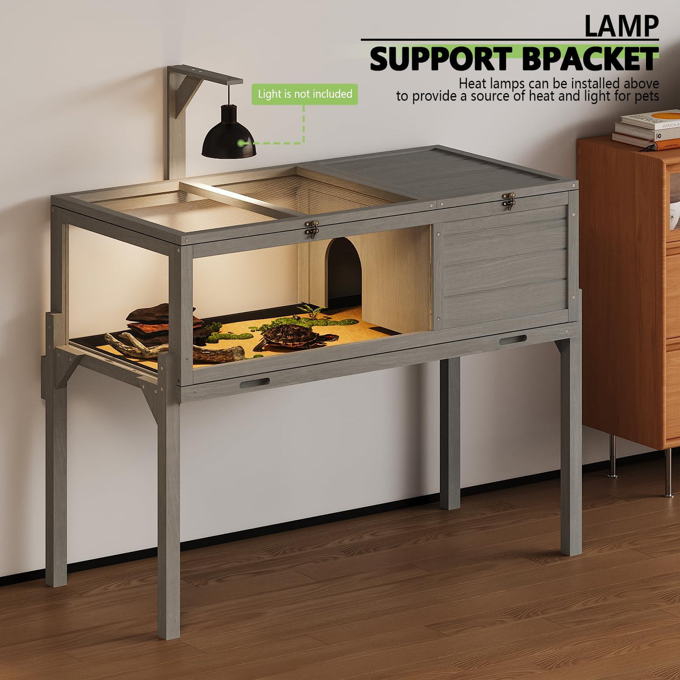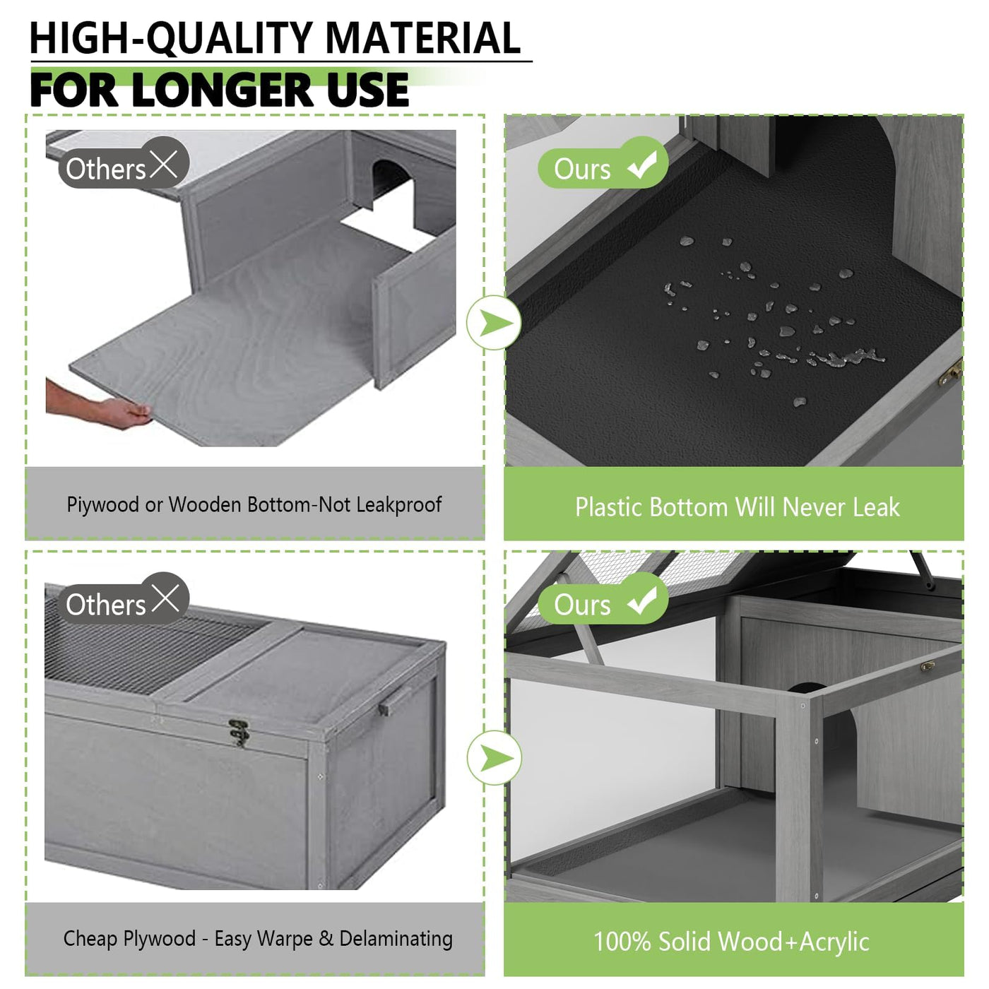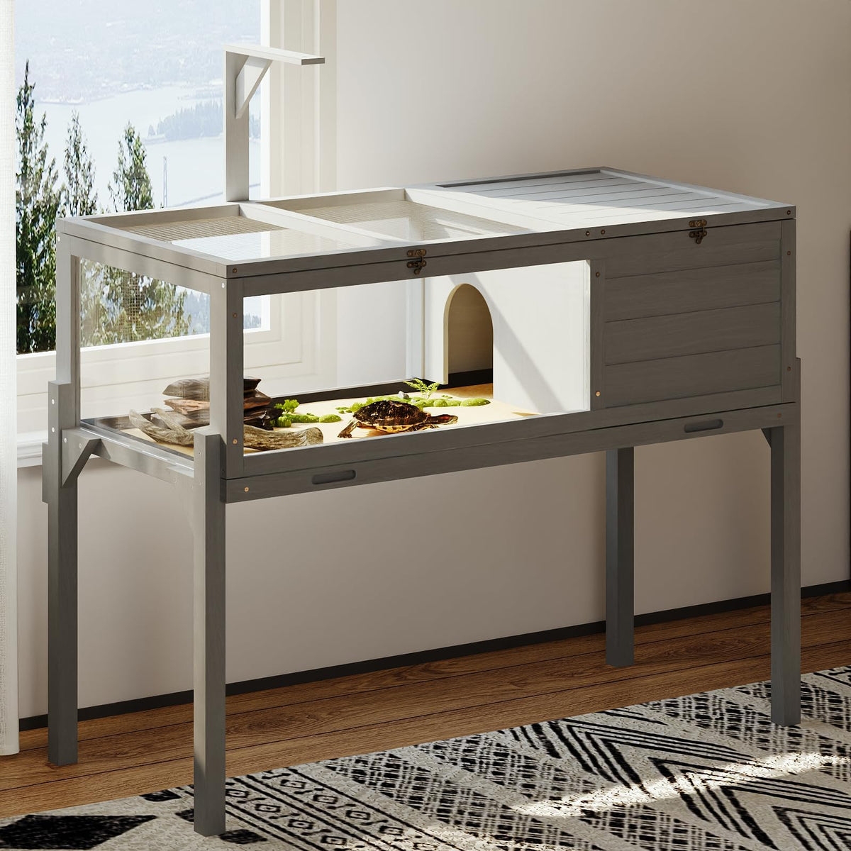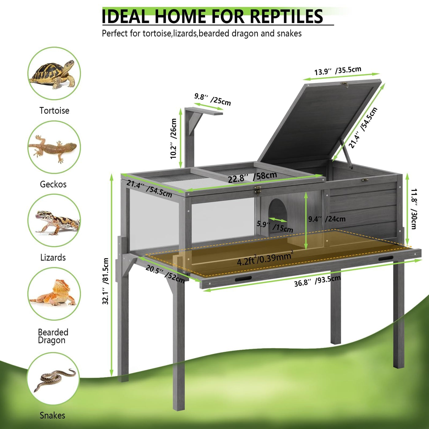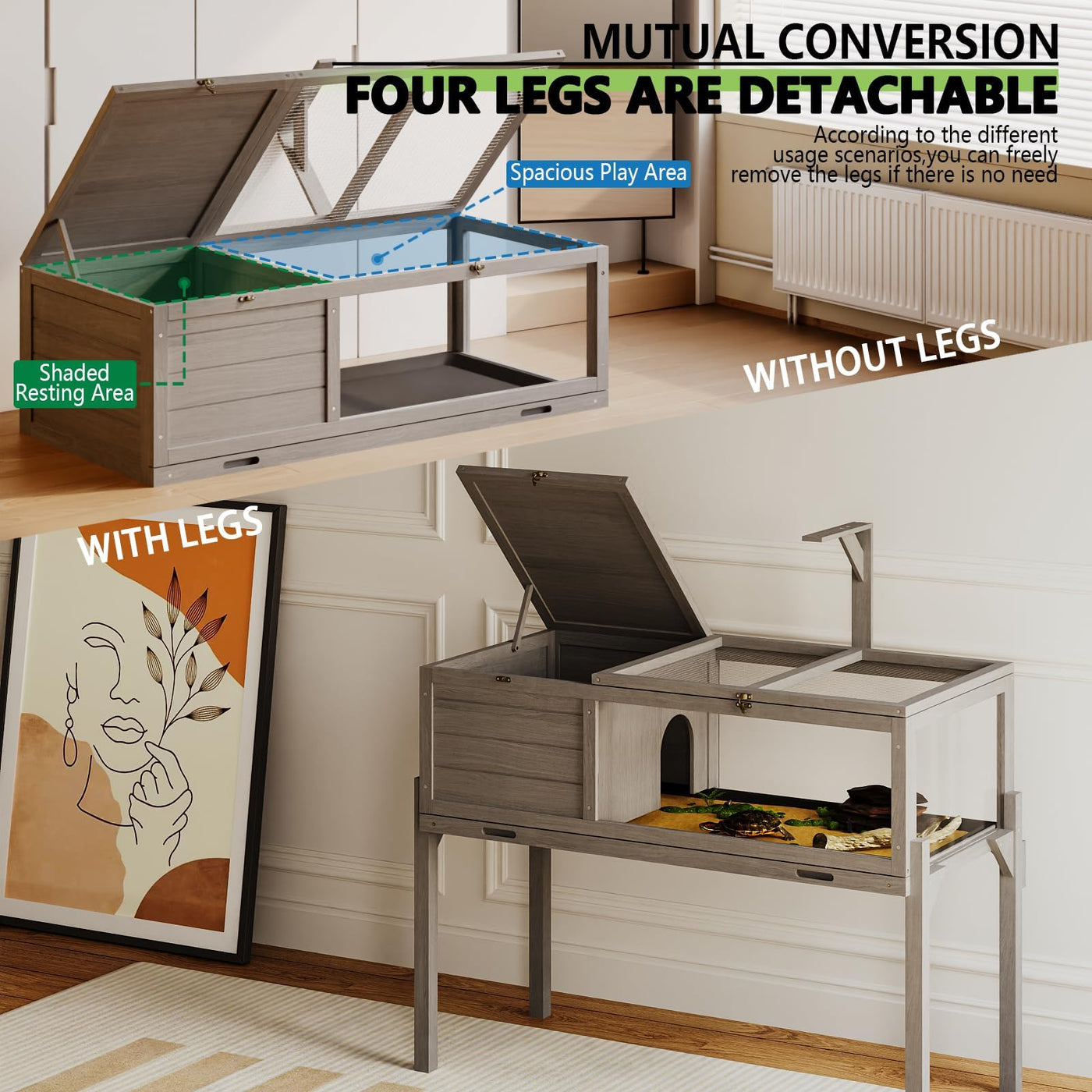 Pretzi Tortoise Habitat With Detachable Legs Product Size:38''L X 24''W X 32''H **Premium Wooden Construction---Crafted From High-Quality, Safe Spruce Wood, This Habitat Ensures A Secure And Natural Environment For Your Tortoise. Its Lightweight And Durable Design Prevents Deformation, Guaranteeing Long-Lasting Use ''**Innovative Dual Chamber Layout---The Tortoise Habitat Includes A Public Area With Three Large Observation Windows For Easy Monitoring And Exposure To Uv Light, While The Private Resting Area Protects Your Pet From The Elements, Ensuring A Comfortable Retreat **Indoor And Outdoor Use---You Can Use It Indoors With Confidence To Protect Turtles From Too Cold Or Too Hot Temperatures, Or To Escape Bad Weather. The Tortoise Enclosure Is Moisture-Proof And You Can Also Use It Outdoors For Small Animals Such As Turtles, Lizards, Geckos And Snakes **Easy To Clean & Assemble---The Tortoise Habitat Is Designed With A Large Removable Plastic Tray To Prevent Bottom Rot, Making Maintenance Hassle-Free. With Two Operable Top Lids Secured By Wooden Brackets, Assembly Takes Only 20-30 Minutes, Ensuring Convenience For Pet Owners
