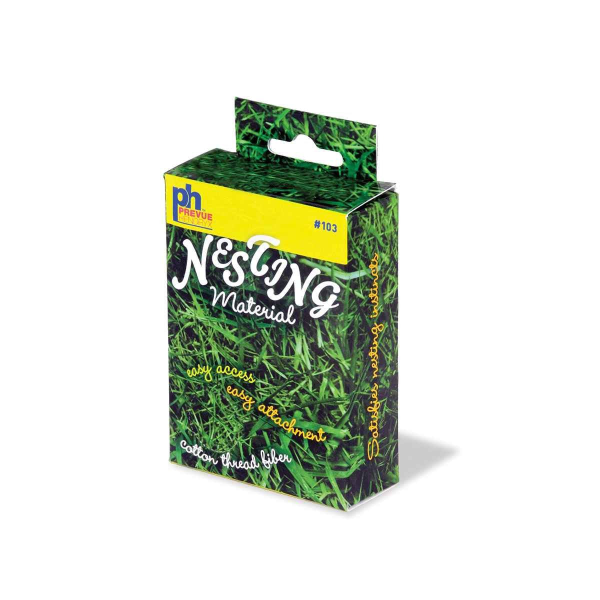 Q: What materials are included in the Prevue Pet Products Bird Nesting Material Box?A: The Prevue Pet Products Bird Nesting Material Box contains natural cotton thread fibers, which are ideal for birds to use in building their nests.