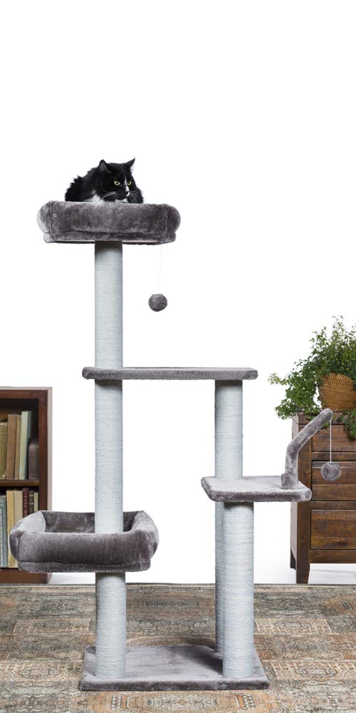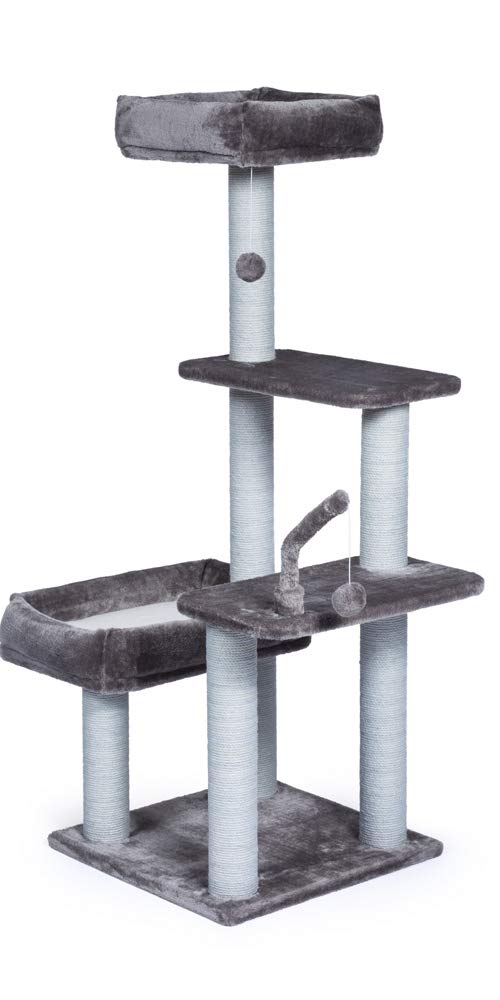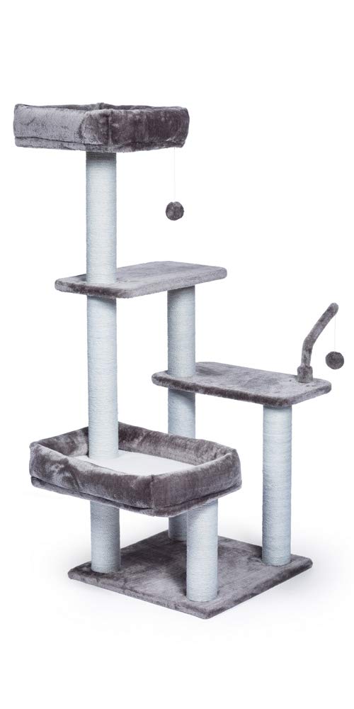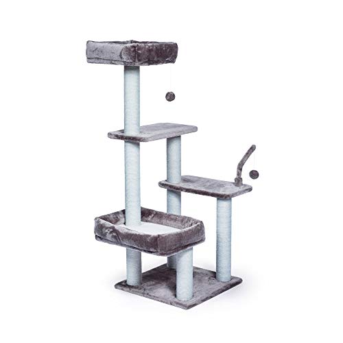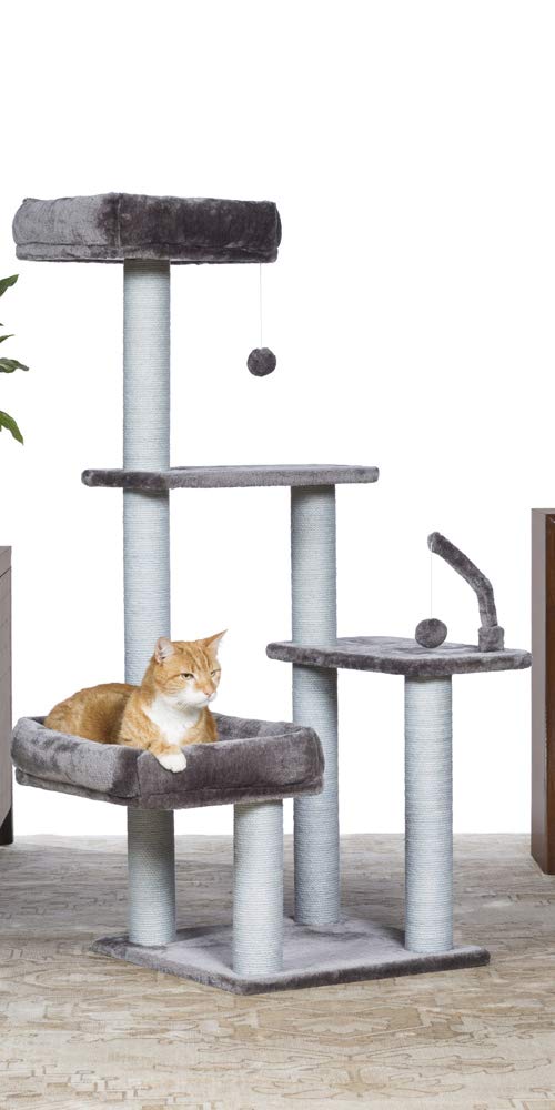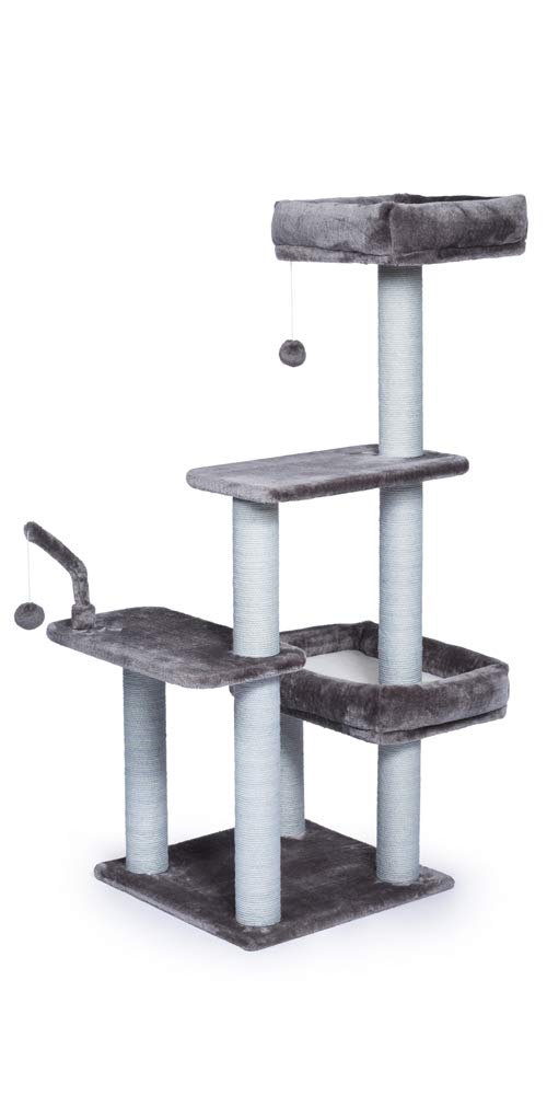 Prevue Pet Products Kitty Power Paws The Ritz 7307 Combines Plush Fabrics With Durable Jute To Provide The Perfect Place For Sleeping, Scratching, Hiding And Playing. In Luxurious Tones Of Blue And Blue Gray, The Ritzs Bolstered Day Beds Are Great For Surveying Surroundings Or Taking A Cat Nap. 3 Swat Toys Hang Playfully While Jute Rope Scratching Posts Offer An Appealing Texture To Cats, Curbing Inappropriate Scratching. Measures 32 Long, 25 Wide And 51 High.