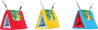 7sturdy tent-like shelter offers birds a place to hide, play and sleep. Plastic inserts in bottom and sides help maintain shape and fabric is machine washable; sewn-in hooks allow for easy insertion into cage.