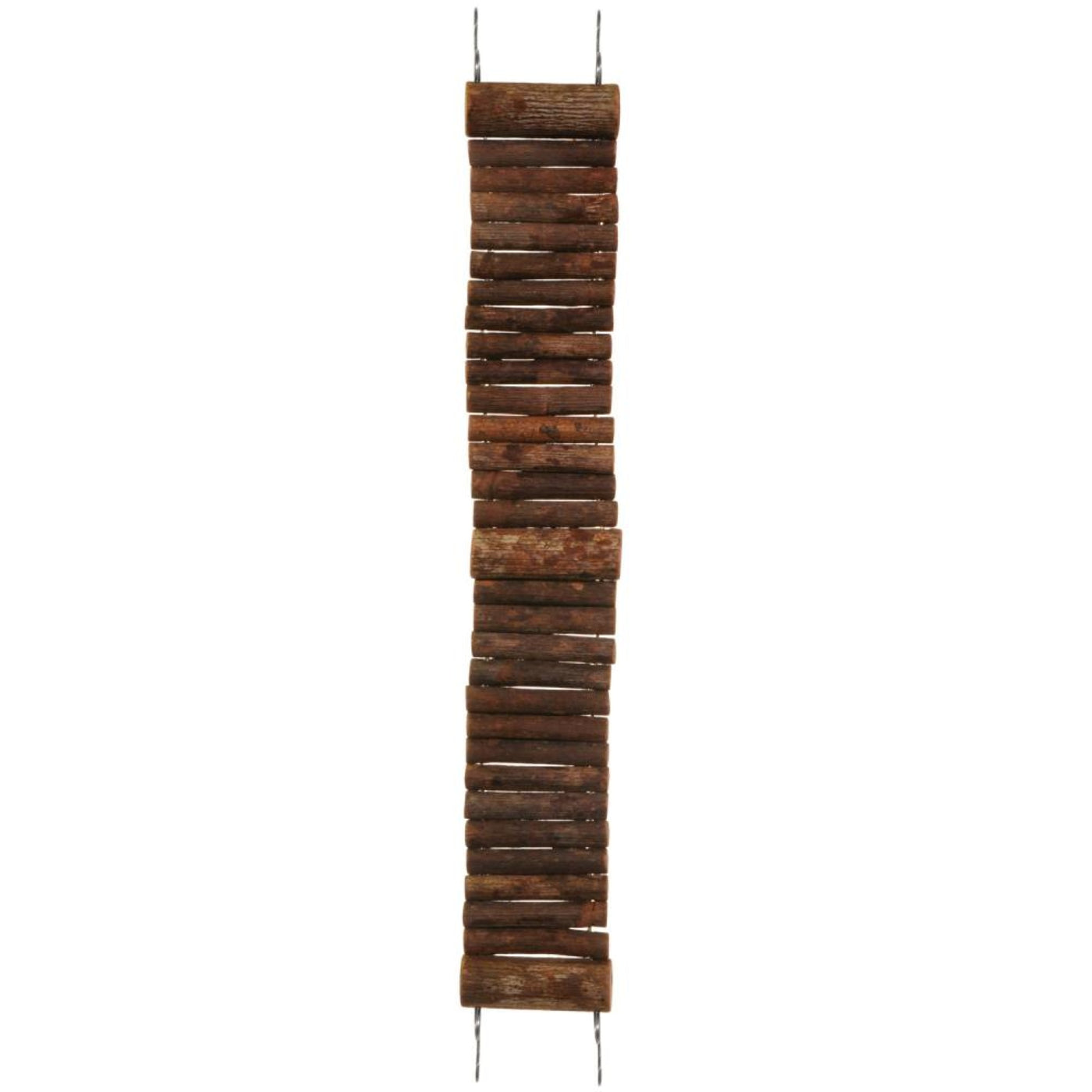 Model Number: 62808 Product UPC Number: 048081628089 Toys are handmade and created from 100% natural, eco-friendly materials The Naturals line offers birds and small animals a rugged, textured landscape to engage with for hours of physical play Perfect foot exercise toy Description Additional Information Prevue Pet Products Naturals Small Wonder Walk Bird & Small Animal Ladder 62808 is handmade from 100% natural, sustainable, materials. Made from environmentally conscious rods strung together on bendable stainless steel wire with wire hooks to secure directly onto cage. This small activity bridge can be endlessly reshaped to provide necessary foot exercise and engaging physical play for small birds, gerbils, hamsters and mice. As always, supervise your pet at play. Our Small Wonder Walk is hand made and actual measurements may vary slightly. Approximately 2 1/2' wide and 15' long. Inner Pack 12 Material Primarily comprised of Hevea rubber wood branches. Unit of Sale EA Warnings Inspect the product periodically and remove from use if it becomes worn or damaged Color Brown Cleaning Thoroughly inspect all toys and accessories on a daily basis. Wipe clean with a damp soft cloth as needed before returning it to the cage. Overall Size 15' L x 2 1/2' W Animal Sizes Small