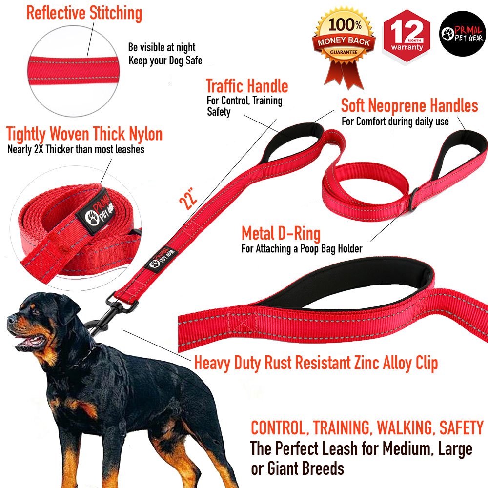 Primal Pet Gear Dog Leash 6Ft Long,Traffic Padded Two Handle,Heavy Duty,Reflective Double Handles Lead For Control Safety Training,Leashes For Large Dogs Or Medium Dogs,Dual Handles Leads(Red)