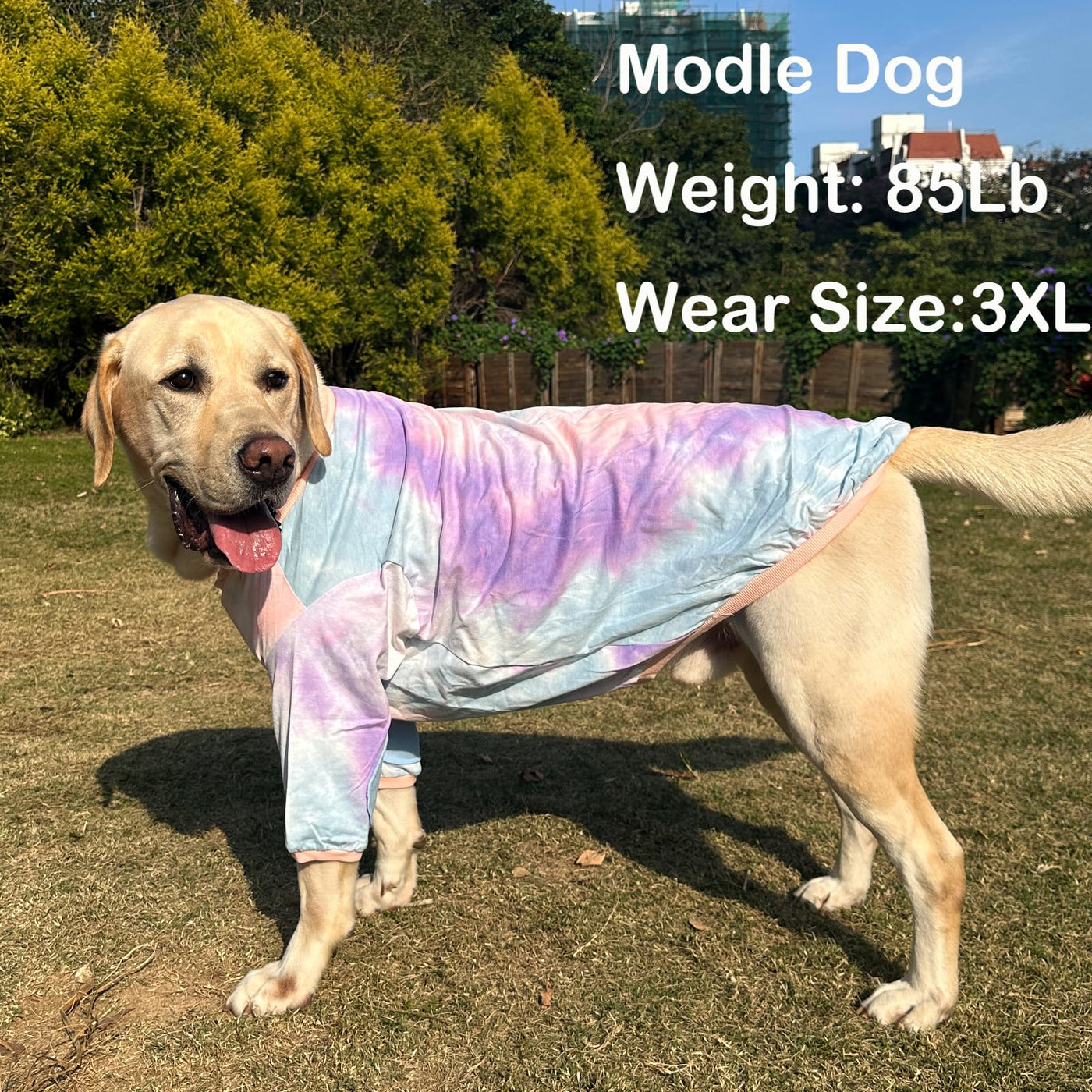 PriPre Tie Dye T-Shirt for Large Dogs - Breathable Cotton Pajamas for Big Dogs, Boy Girl Tiedye L