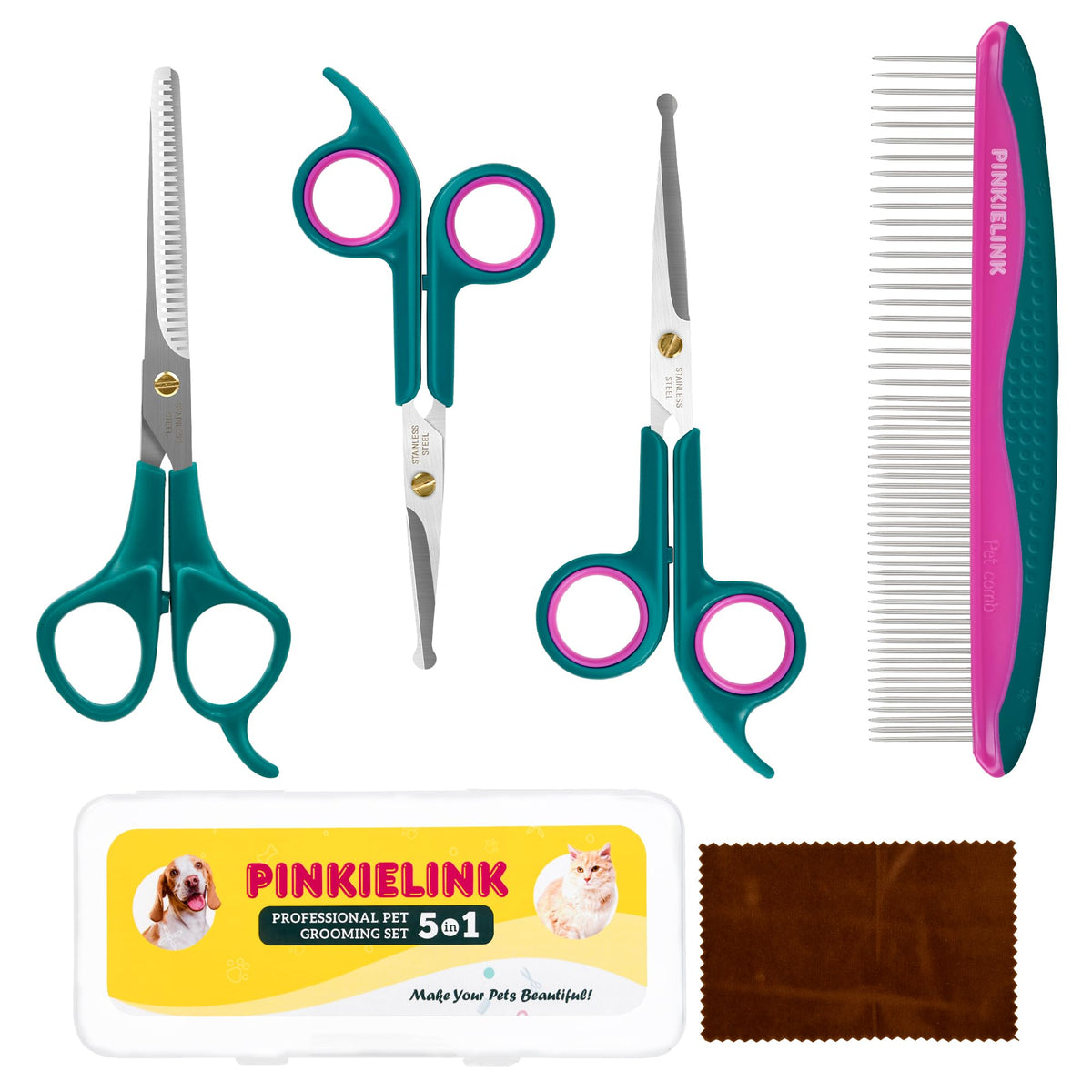 Professional 5 In 1 Pet Grooming Kit - Stainless Steel Dog & Cat Grooming Scissors With Rounded Tip Blades For Safe Fur Trimming