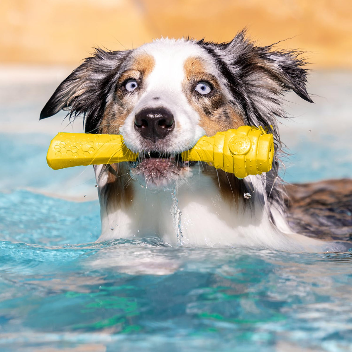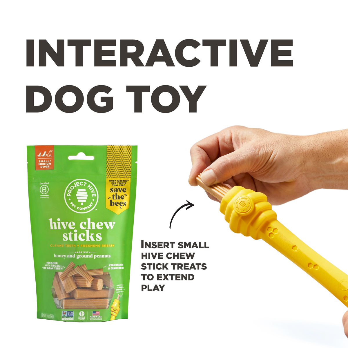 If Your Dog Loves To Fetch And Retrieve, Our Hive Fetch Stick Is A Safer Choice Than Traditional Sticks Found In Nature. Resembling A Honey Dipper, Dogs Love To Gnaw On The Unique Shape, And They Can Easily Carry It In Their Mouths. The Cavity On One End Is Compatible With Our Hive Chew Sticks For Small Dogs, Which You Can Insert As A Reward Or To Further Extend Playtime. The Hives Bright Yellow Color Makes It Easy For You And Your Dog To Find-Both Indoors And Out In Nature. Speaking Of Outside, The Hive Floats-So You Can Toss It Into Any Lake, Pool, Or Body Of Water For Even More Fun! And You Know What Else? Your Purchase Helps Save The Bees!