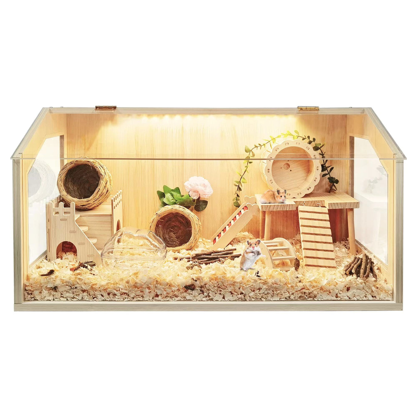 ?Thick Bedding Matters?Research shows its best to have plenty of bedding so your hamsters can make a burrow just like they would in the wild. The extreme large interactive space of our cage is able to hold thick bedding and toy system for your pets to dig and explore. We offer 4 different sizes, feel free to choose from 24-48in length. Note: The inner decoration is not included in the package