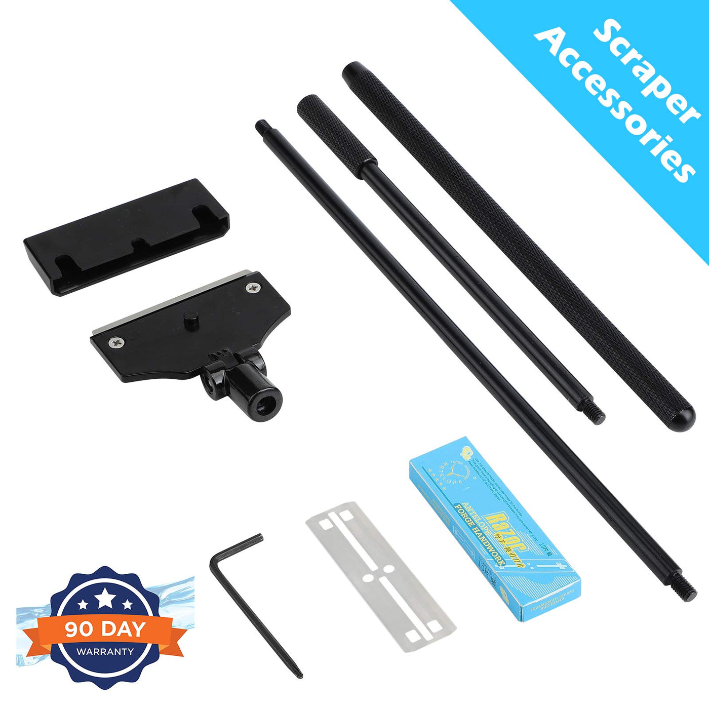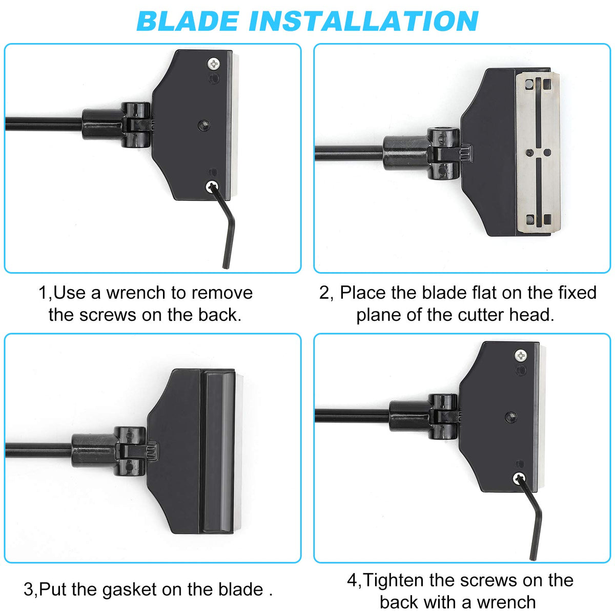 Deep cleaning-- The algae scraper for glass aquariums maintains an angle of 30-45 degrees which can quickly and easily clean the aquarium glass from top to bottom The front rear left and right glass can be freely operated to keep your aquarium in optimal health Lightweight and exquisite-- The handle of the fish tank scraper is made of stainless steel and the surface is rust-proof The non-slip handle can easily hold it when moving and The sharp blade of the fish tank cleaner can clean perfectly without scratching your precious glass The blade is detachable-- You only need to loosen two screws gently to replace it with a new blade We provide 10 additional blades (We recommend that the blade be wiped dry and stored after use to avoid rusting if it is not used for a long time)For more spare blades please search B08ZHJ5FLB Safe storage-- The cutter head is equipped with a protective cover Put the protective cover back in time after you use it to prevent the wear of the blade and the sharp blade from causing other injuries Multiple specifications are available-- We provide three different lengths of algae scrapers 16 21 26 Inches you can choose the appropriate length according to the height of the fish tank
