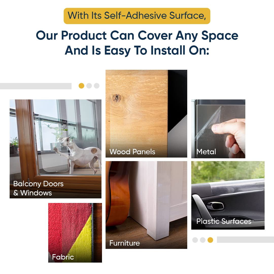 As you check out the pictures you will see how the unique Pet Scratch Protector design allows you to laser focus your pet scratch protection using tough PVC Grip-Tight adhesive instead of thin tape, pins, or screws.