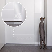 Q: How do I install the PROTECTO® Pet Scratch Protector?A: To install the PROTECTO® Pet Scratch Protector, simply cut the sheet to the desired size with the provided blade, peel off the film, and press the self-adhesive backing onto a clean, dry surface. It's easy to apply at any height or angle.