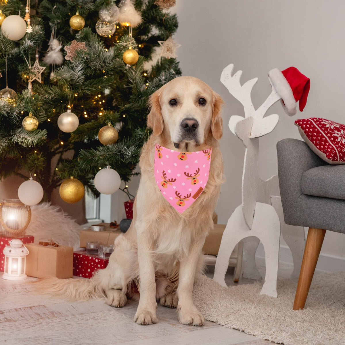 Ptdecor Christmas Dog Bandana,Xmas Pink Scarf Santa Deer Reversible Holiday Dog Scarf, Female Christmas Bandanas For Large And E