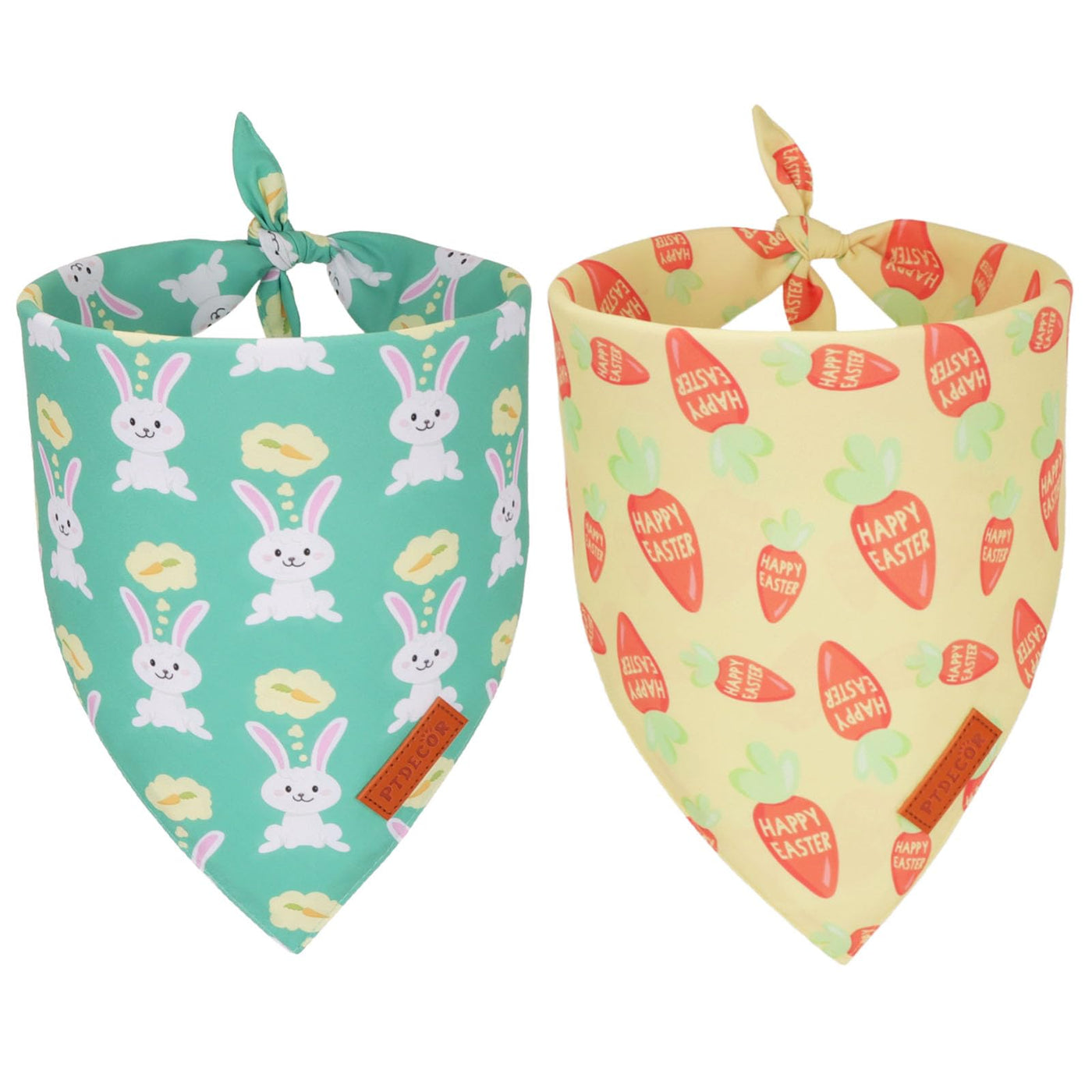 Ptdecor Easter Dog Bandana, Green And Yellow Rabbit Carrot Reversible Holiday Dog Scarf, Multi Size, Triangle Pet Easter Bandana
