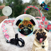 Pug Life 40'' Wearable Mini Adjustable Dog Leash With Free Bonus - Powerful Lightweight Retractable Keychain Clip For Hiking, Tr