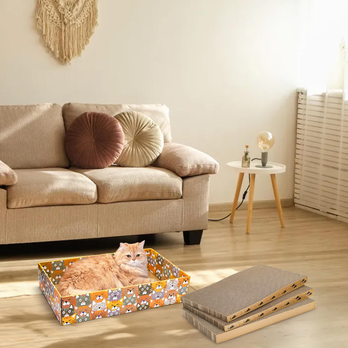 Pumtus Set Of 2 Cardboard Cat Scratchers, 6 Pcs Corrugated Cat Scratch Pad With 2 Boxes, Cute Reversible Kitty Sofa Bed, Refilla