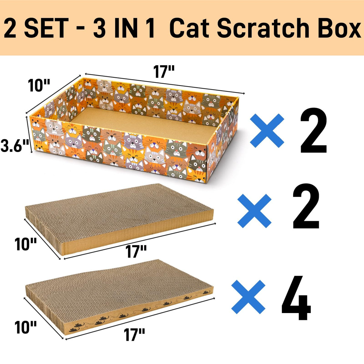 You Will Receive Set Of 2 Cardboard Cat Scratchers, Including 2 Boxes And 6 Pieces Of Refillable Pads. The Whole Cat Scratch Box Measures 17''L X 10''W X 3.6''H Inches, Offering Large Space For Indoor Cats And Kittens To Relax And Sleep. The Cat Scratcher Bed Is Made Of Heavy Duty Cardboard, Totally Premium And Durable. And The Dense Corrugated Surface Can Withstand Sharp Claws For A Long Time. Pumtus Cute Cat Scratching Toys Will Create A World To Satisfy Cat'S Scratching Needs, Let Your Furry Friends Play Happily.
