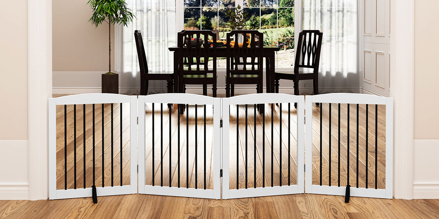 PUPETPO Freestanding Pet Gate for Dogs, Foldable Wooden Dog Gate for House, Indoor Dog Gate for Stair, Doorway, Gates for Dogs I