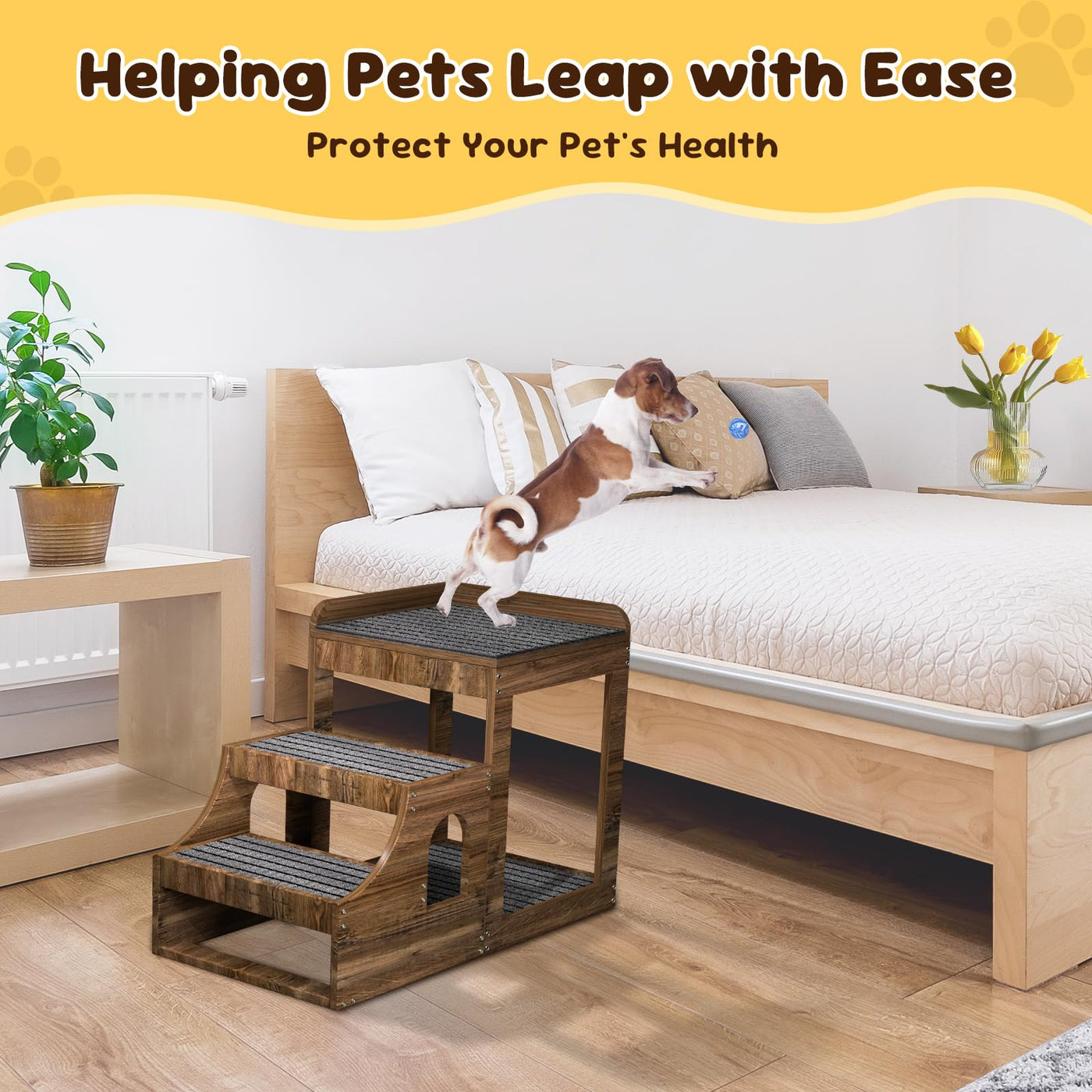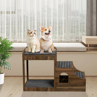 Pupihom Pet Window Perch With Stairs, Multi-Level Bunk Bed For Dogs And Cats, Elevated Pet Bed Couch, Wood Dog Stairs With Non-S