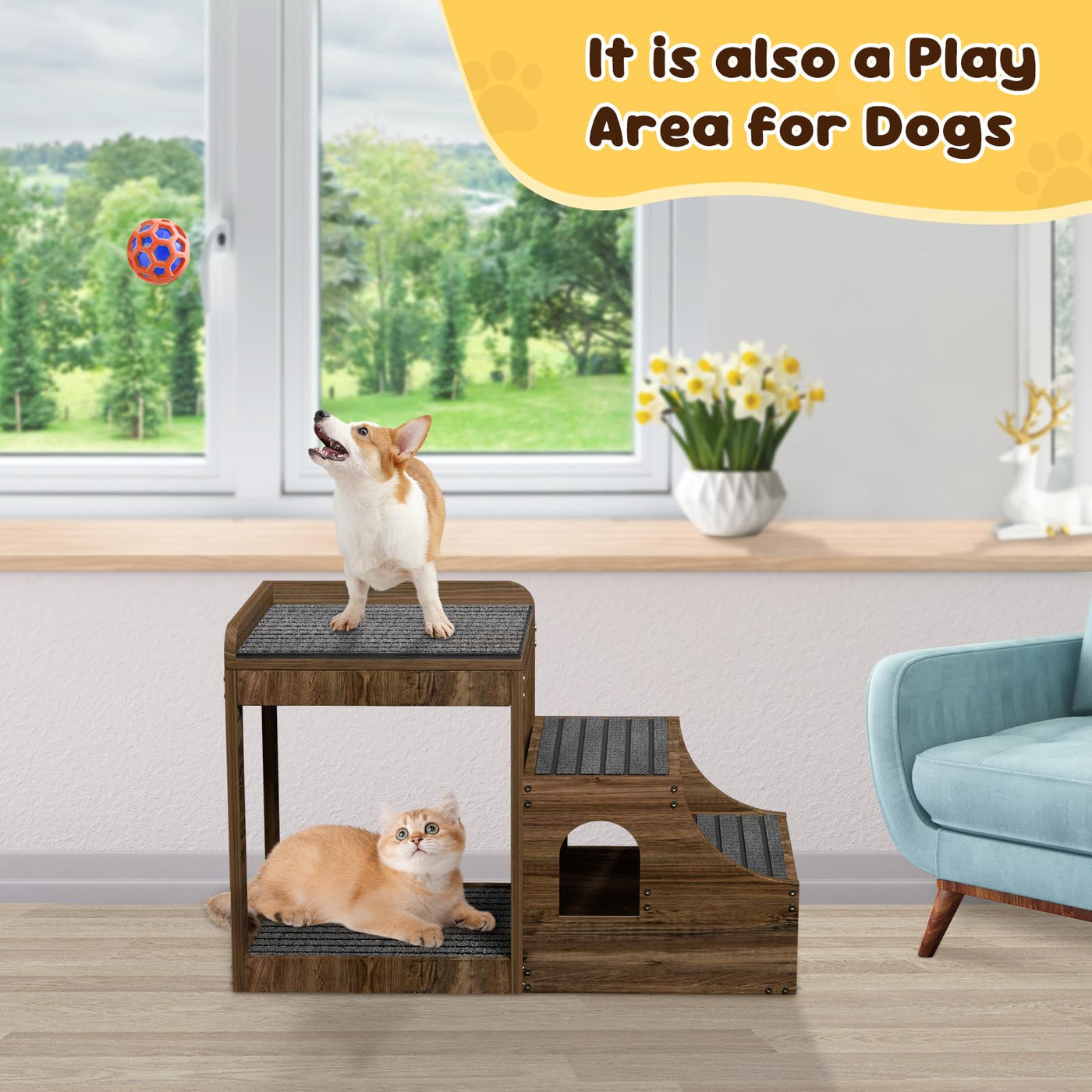 The Pupihom Pet Window Perch With Stairs Is A Good Choice For Multi-Pet Households, Combining Style, Comfort, And Practicality. Designed With Both Pets And Owners In Mind, This Versatile 2-Level Pet Bunk Bed Is Crafted From High-Quality Wood, Providing A Sturdy Structure That Supports Up To 300 Lbs. The Top Platform Offers A Cozy Space For Your Pets To Rest, While The Lower Level Provides Additional Seating Or Storage For Small Pet Essentials, Such As Toys, Grooming Tools, And Leashes. The Dog Window Bench With Stairs Provides A Safe And Comfortable Space For Your Dogs Or Cats To Relax And Observe Their Surroundings.