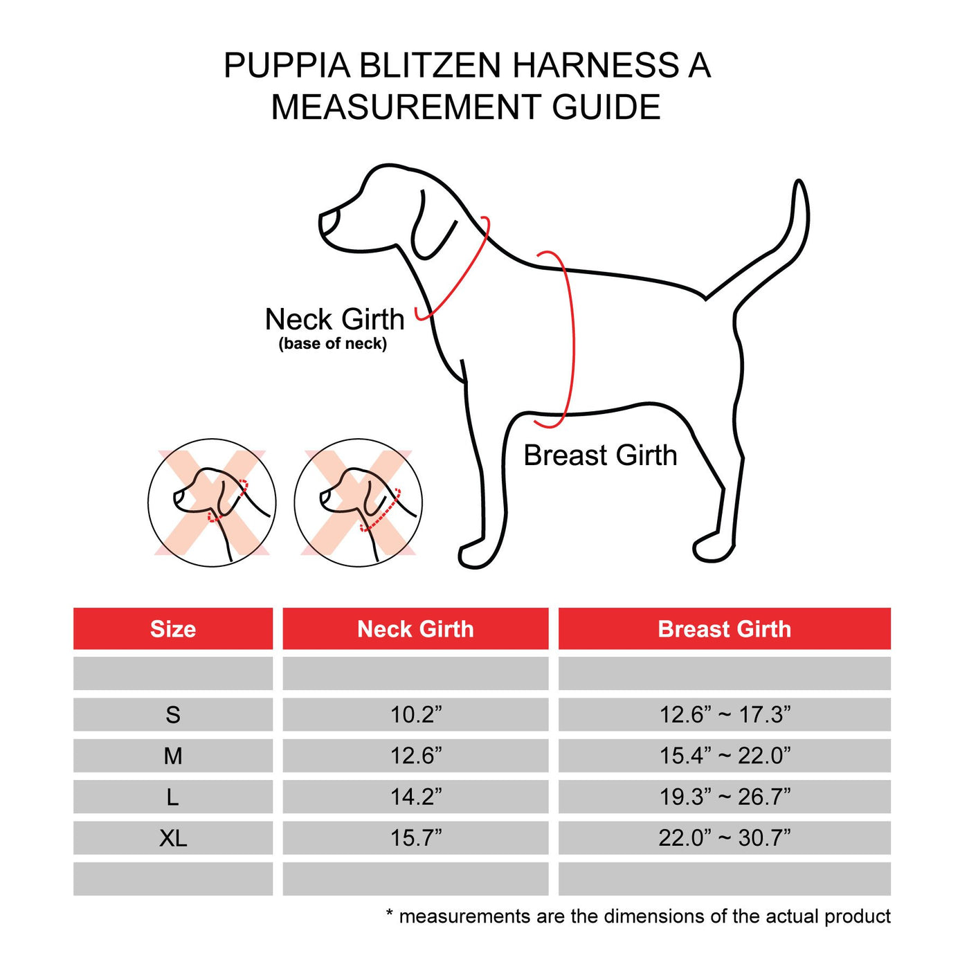 Q: What sizes are available for the Puppia Blitzen Dog Harness?A: The Puppia Blitzen Dog Harness is available in sizes ranging from Small to Extra Large, ensuring a comfortable fit for small and medium dogs.