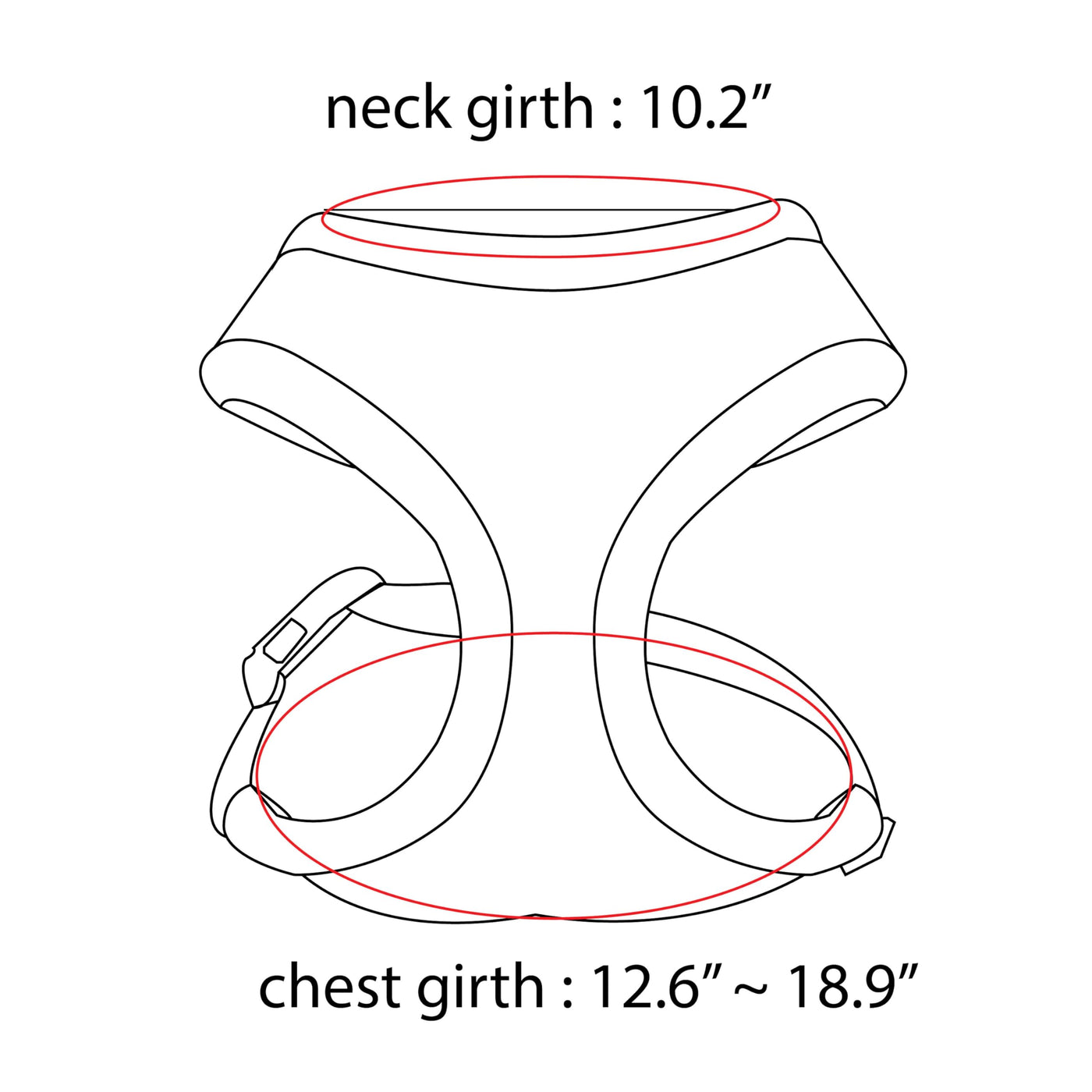 Q: What size should I choose for my dog?A: To determine the correct size for your dog, measure the neck at the base and the chest girth behind the front legs. For the small size, the neck measurement should be around 10.2 inches, and the chest girth should be between 12.6 to 18.9 inches. Always refer to the size chart provided in the images to ensure the best fit.