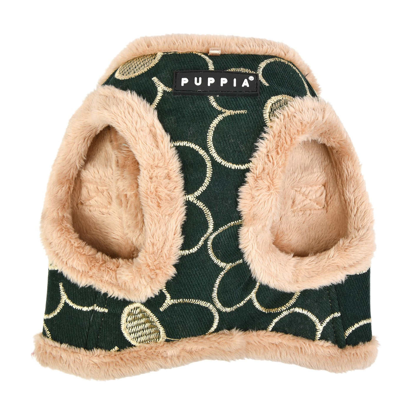 Q: What makes the Puppia Florent Harness B unique compared to other harnesses?A: The Puppia Florent Harness B features a stylish vest design with a gold flower pattern, an integrated dog harness with a carabiner, and a PUPPIA SMART TAG pendant with a QR code for added functionality.