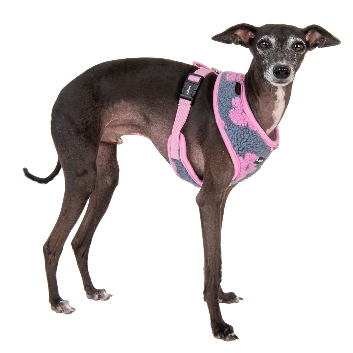 Puppia Ren Dog Harness Over-The-Head Warm Winter Flower Pattern Adjustable Chest For Small And Medium Dog, Pink, X-Large
