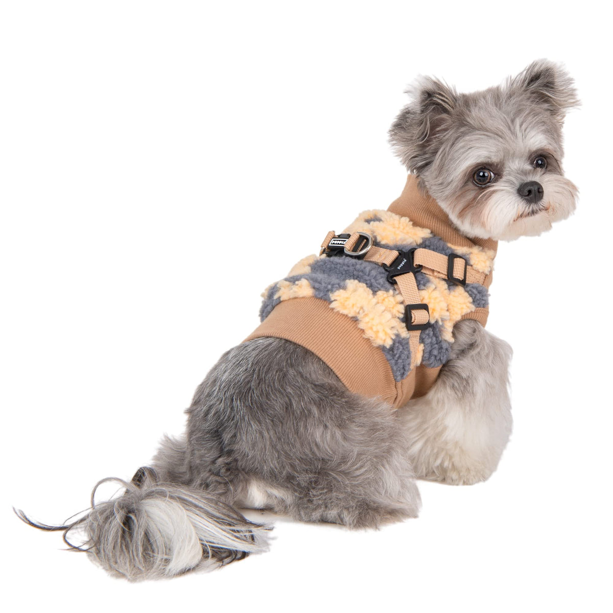 Puppia Ren Jacket Dog Harness Pullover Warm Winter Flower Pattern For Small And Medium Dog, Beige, Medium