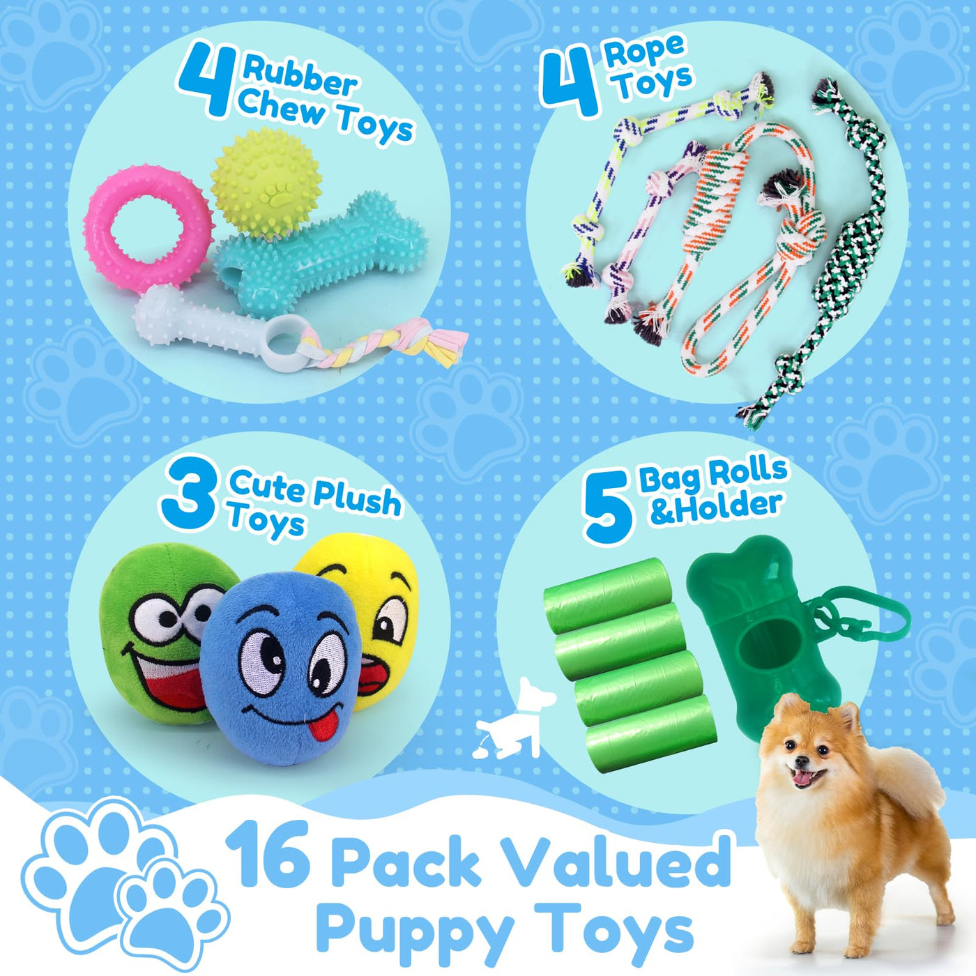 Puppy Chew Toys For Teeth Cleen & Gum Massage, 16 Pack Puppy Teething Toys For 0-6 Months, Soft Plush, Ball And More Rope Intera