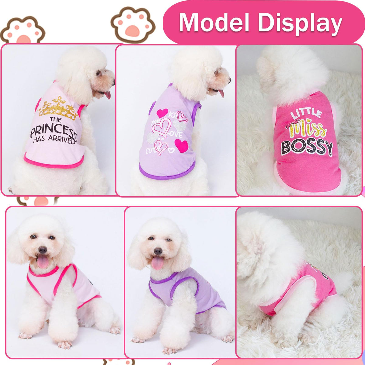 Item Type: Variety of 4 pieces cute color dog clothes, allowing you to create endless outfit combinations that showcase your pup's unique personality. 1)Indulge in the joy of dressing up your canine companion and let her strut her stuff in these charming outfits made just for her. 2)With this versatile collection, your furry fashionista will undoubtedly turn heads wherever she goes. 3)With a snug yet stretchy fit, it's easy to slip on and off while ensuring a secure, non-restrictive wear. Size: XXSmall: Back Length: 7.87in, Bust Length: 12.59inch, Neck:9.84inch; XSmall: Back Length: 9.84in, Bust Length: 14.17inch, Neck:10.62inch; Small: Back Length: 11.81in, Bust Length: 17.71inch, Neck:11.81inch; Medium: Back Length: 13.78in, Bust Length: 19.68inch, Neck:13.78inch; Large: Back Length: 14.96in, Bust Length: 21.25inch, Neck:14.96inch;